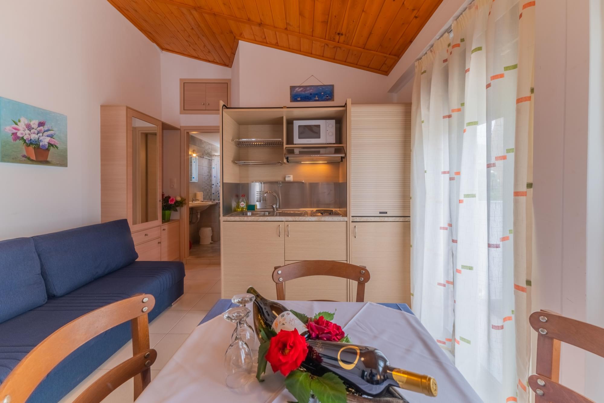 This bright and spacious apartment opens to a terrace with pool and garden views. It is also equipped with a kitchen, air conditioning, satellite TV, safe box, telephone and private entrance. Free Wi-Fi is available.
