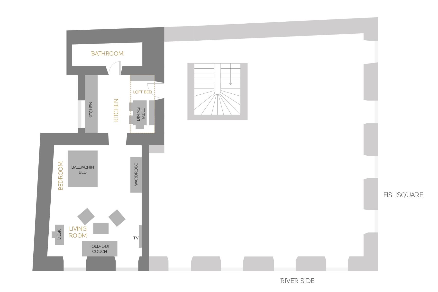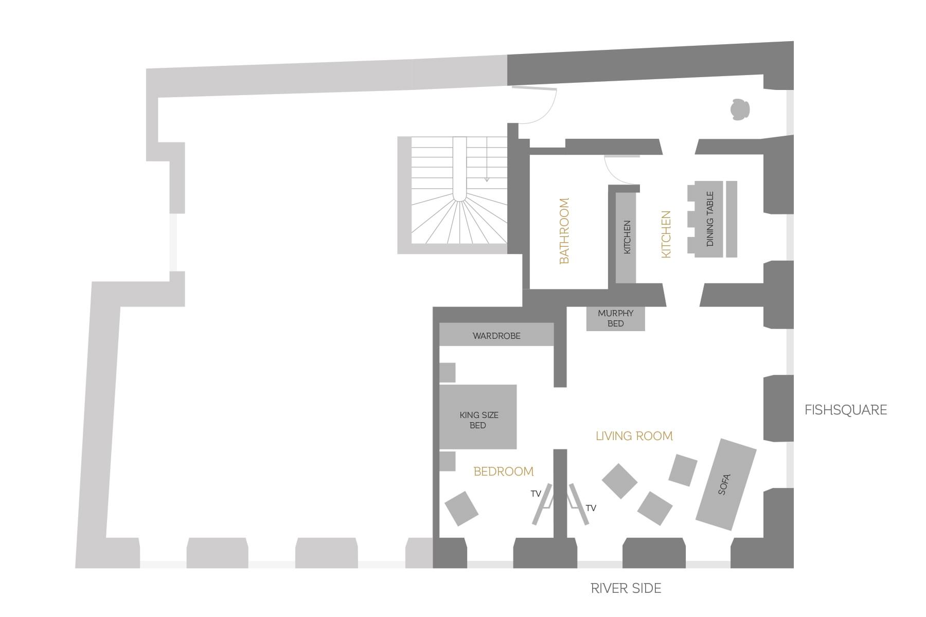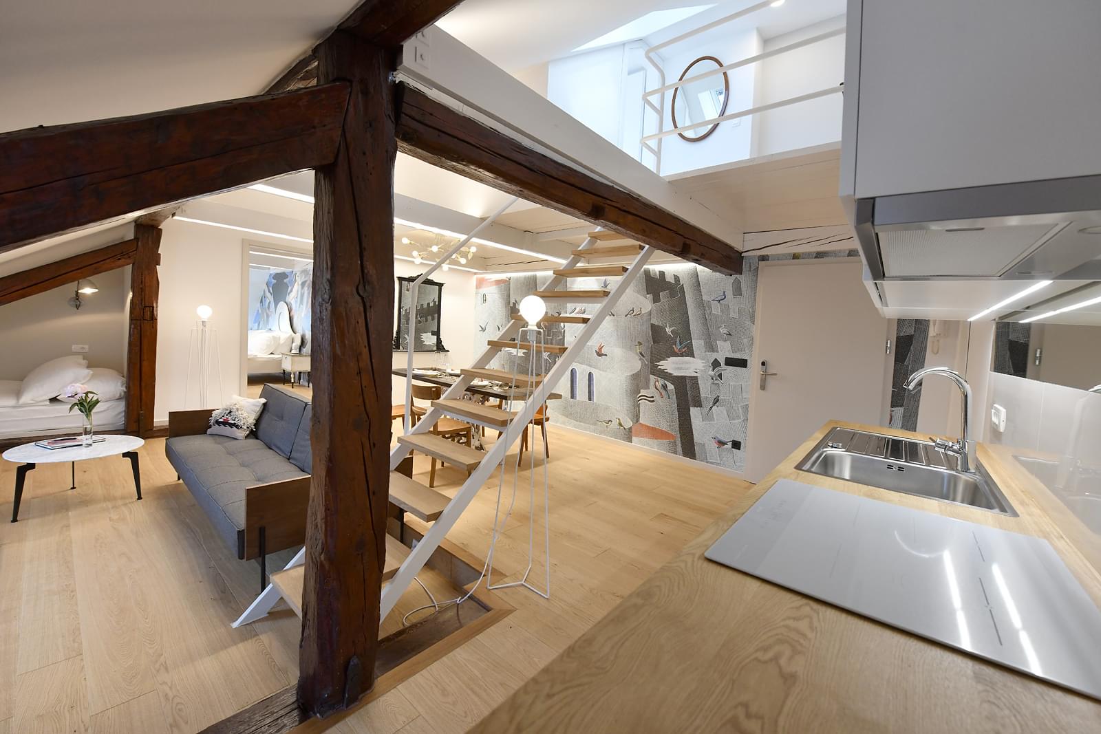 4 Apartments Tromostovje are situated on the first and third floor in the historical building next to the river in the heart of Ljubljana city center.