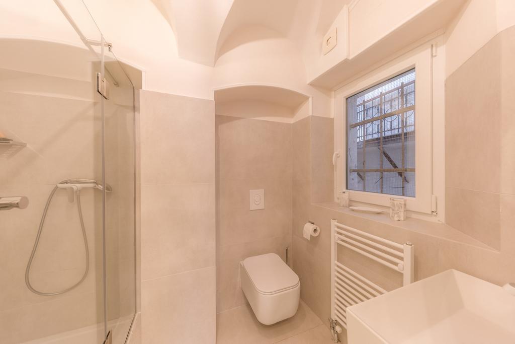 One bedroom is located in the main space, enclosed in glass, another very comfortable bedroom is located on the other side of the apartment, featuring a private bathroom and a view of the inner courtyard. In case someone unexpectedly joins you on your trip, they are more than welcome, as there is also a designer convertible sofa in the main space which can accommodate up to two people.