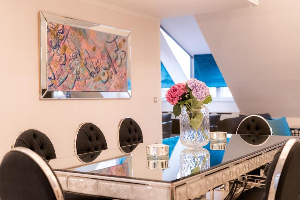 AB Residence – Penthouse was adapted according to the highest standards in the true sense of the word. It’s not only a place where you lay your head down to relax while visiting the city and forget about it as soon as you return home, but a charming oasis of inspiration carefully blended selected antiques, modern furniture, artworks by renowned artists, and a jaw-dropping view that make sure you escape the hustle and bustle of everyday life allowing you to relax, be inspired and find your inner self while re-discovering the beauty of life.