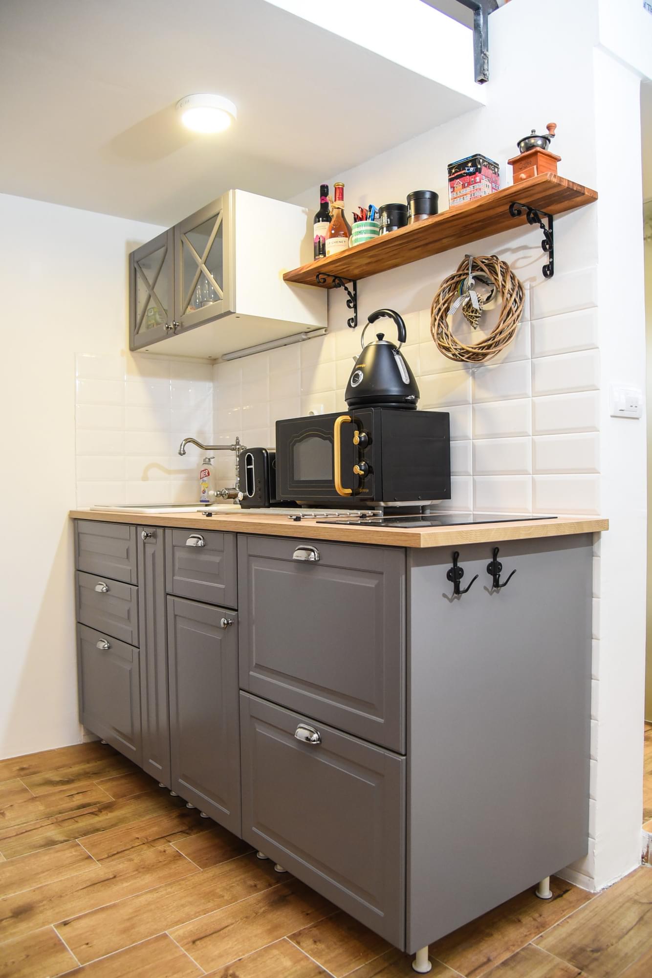 Studio smešten u samom centru Smedereva, udaljen 600 m od glavnog gradskog trga. Veličine 34 m2, sa sopstvenim dvorištem i prostorom za sedenje. Apartman poseduje dnevni boravak sa ugaonom garniturom, trpezariju, kuhinju, sopstveno kupatilo kao i spavaći blok na galeriji. Udaljen svega 200 metara od Dunava. Opremljen u modernom stilu sa retro-industrijskim detaljima.