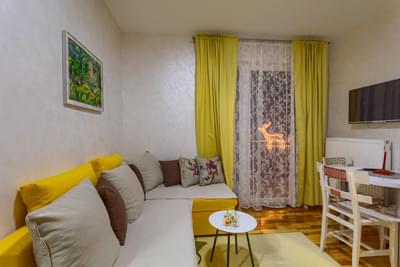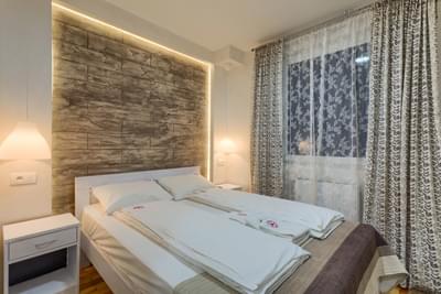3/1 apartman sa odvojenom spavaćom sobom, dnevnim boravkom, kuhinjom i kupatilom. Površina apartmana je 28 m2. Apartman poseduje komplet opremljenu kuhinju, TV, kablovska, telefon, bežični internet.