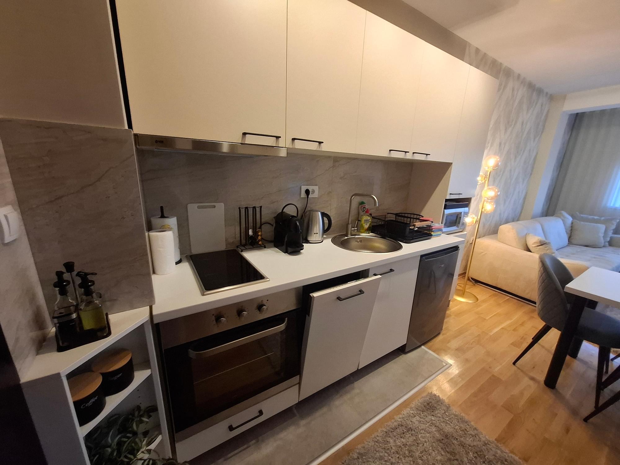 Ovaj klimatizovani smeštaj ima dnevni boravak, jednu spavaću sobu, potpuno opremljenu kuhinju sa frižiderom i aparatom za kafu, kao i kupatilo sa tušem i fenom za kosu. Obezbeđeni su peškiri i posteljina.