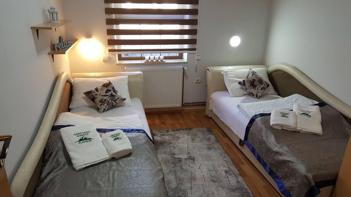 Apartman Baneks 1 Zlatibor nudi smeštaj za 6 osoba, sa dve odvojene spavaće sobe. Apartman je vrlo komforan, površine 54 m2, sadrži kompletno opremljenu kuhinju za pripremu obroka sa mikrotalasnom, tosterom, ketlerom, dnevni boravak u kome se nalazi dvosed, odvojenu spavaću sobu sa bračnim krevetom, odvojenu sobu sa dva ležaja, kupatilo sa tuš kabinom, terasu sa otvorenim pogledom na Tornik, etažno grejanje, kablovsku televiziju, kao i besplatan wi-fi internet, klimu i parking.