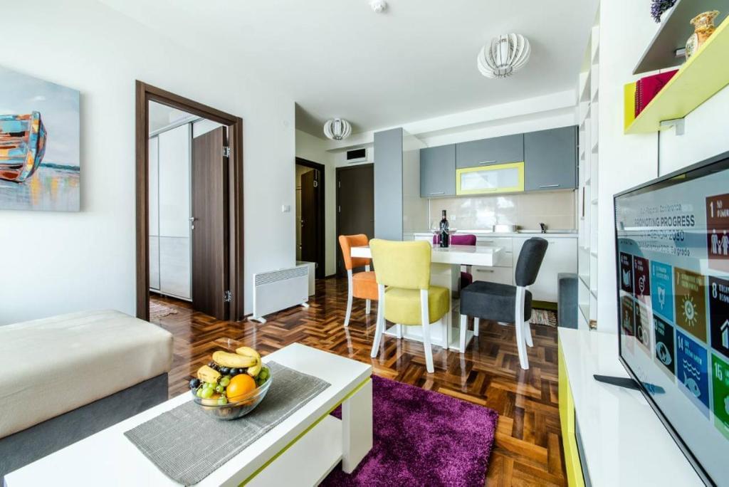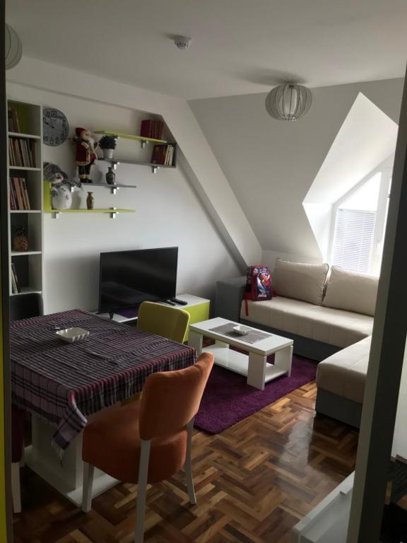 Apartman ima 1 spavaću sobu, 1 kupatilo, flat-screen TV sa satelitskim kanalima, trpezariju i potpuno opremljenu kuhinju.