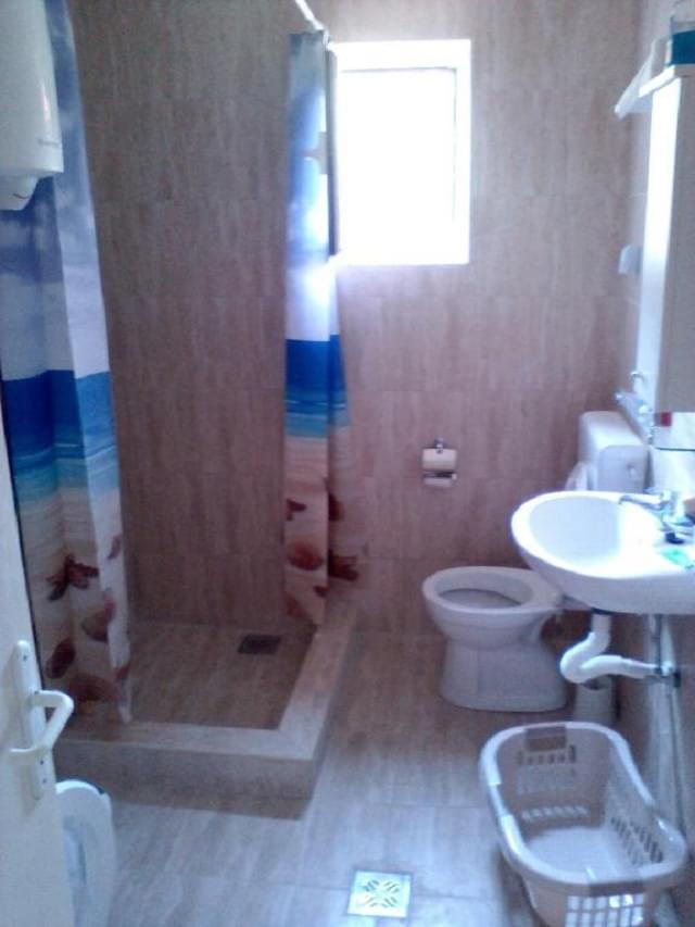 Its located in Prcanj, there are two separate apartments in one house both are 120m2, with separate entrances, every floor has 3 bedrooms, 2 bathrooms, air-condition, kitchen, washing-machine and dishwasher, living room, dining room, beach is located 10m from the house as you will see from the pictures. Everything inside is new form furniture to bathrooms, the view is amazing from terrace, living room and dinning room. They are facing the sea and the landscape of Dobrota which is across the sea. The floor that you choose is entirely yours, only shared space are the stairs leading to the house and the outside terrace which is separated from both floors. There is a cafe on the ground floor.