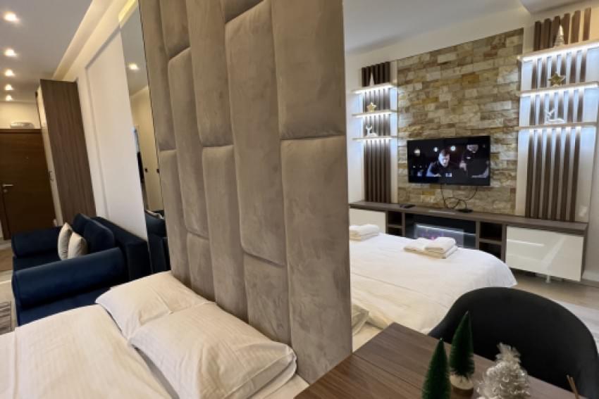 Apartman N 33 – Holiday je tipa Studio, smeÅ¡tajnog kapaciteta je do 4 odrasle osobe. Nalazi se na 3. spratu objekta Milmari Resort. Kompletno je opremljen za samostalan boravak. Ima toplu vezu sa bazenom i Spa sadržajima. NaÅ¡i gosti imaju i popust od 30% na cenu za korišćenje Spa sadržaja.