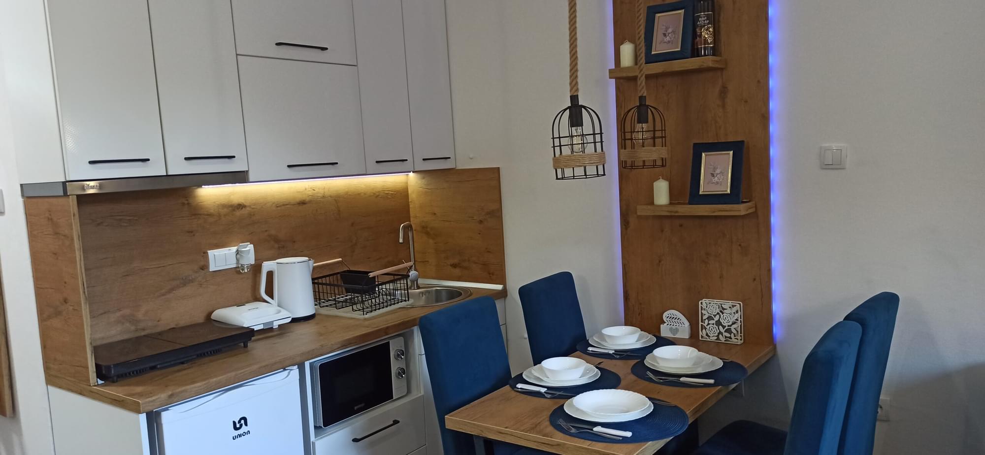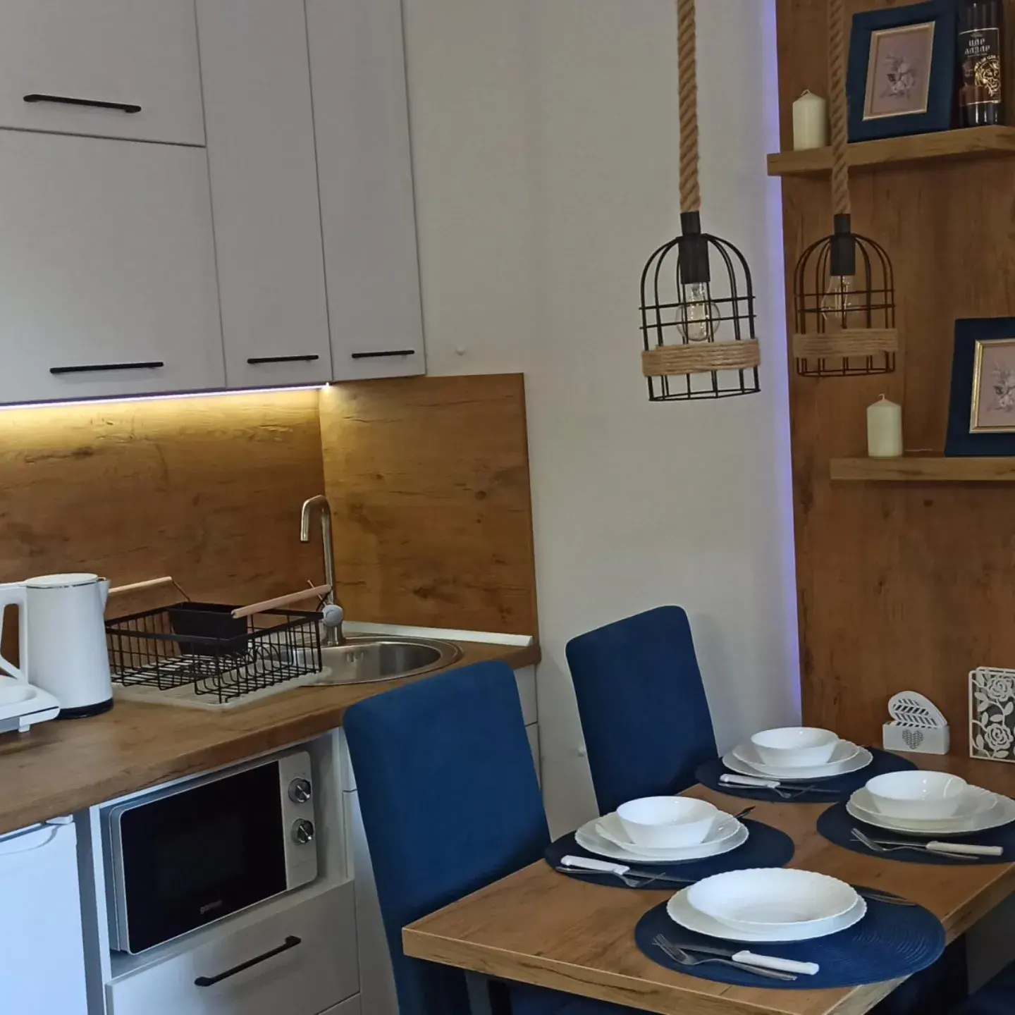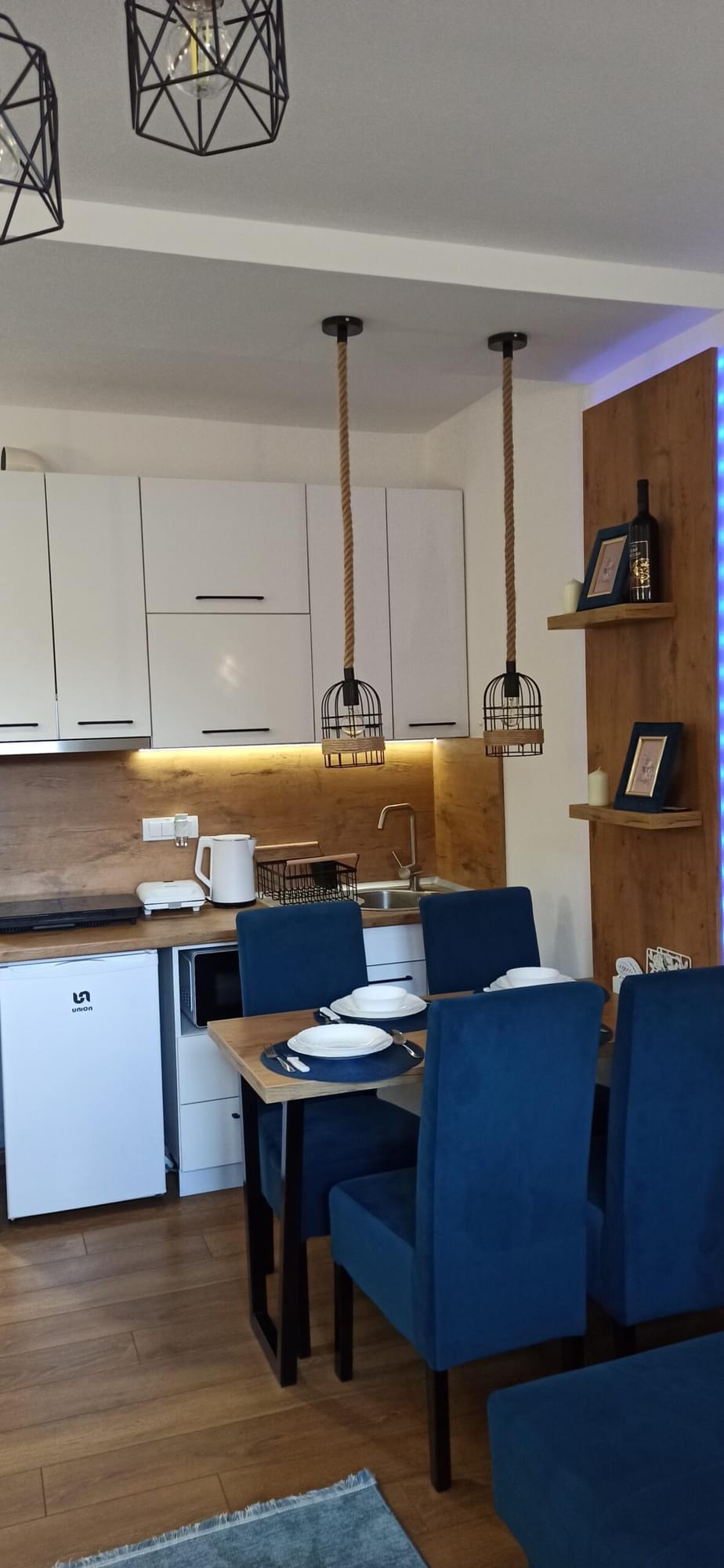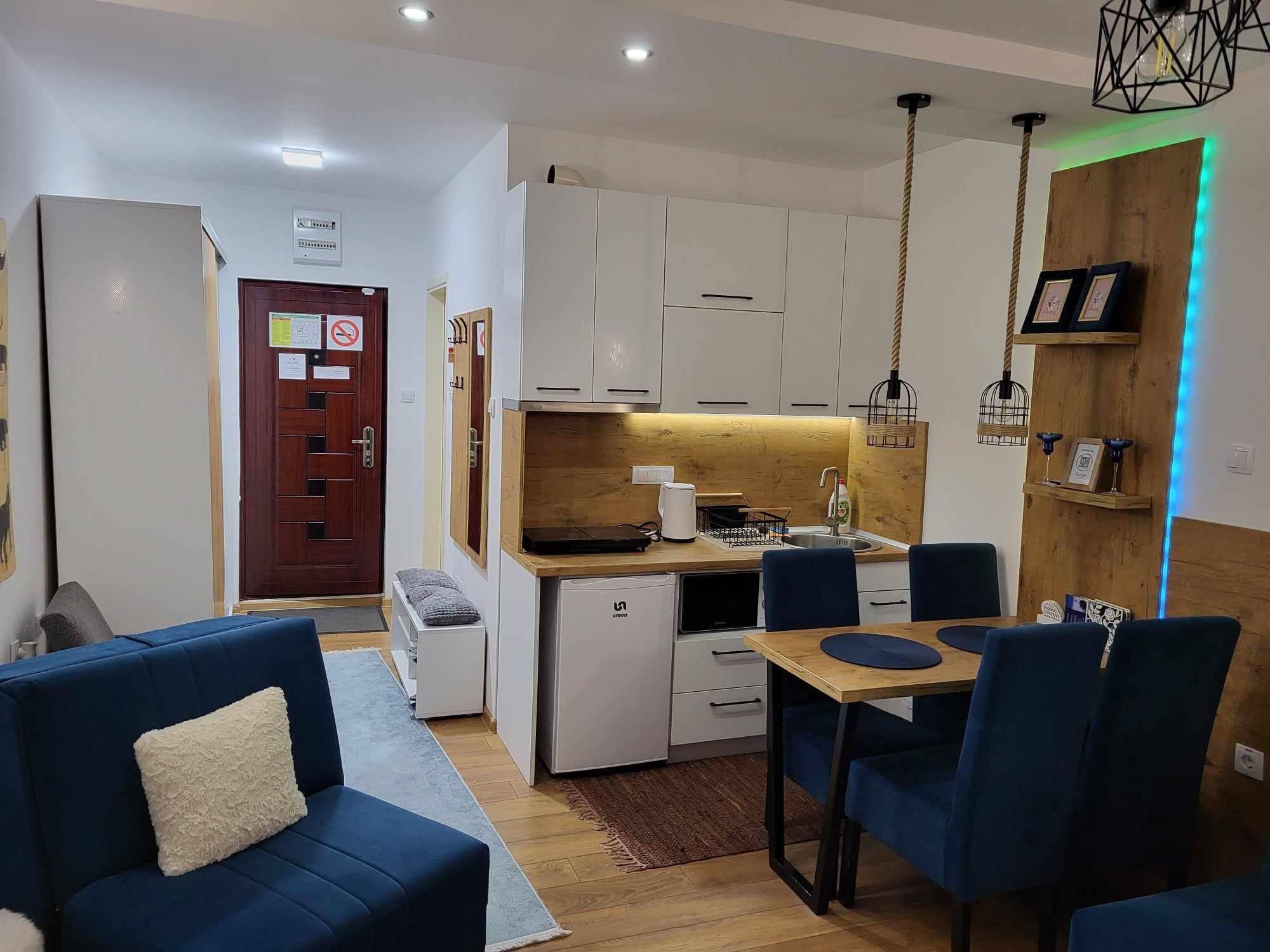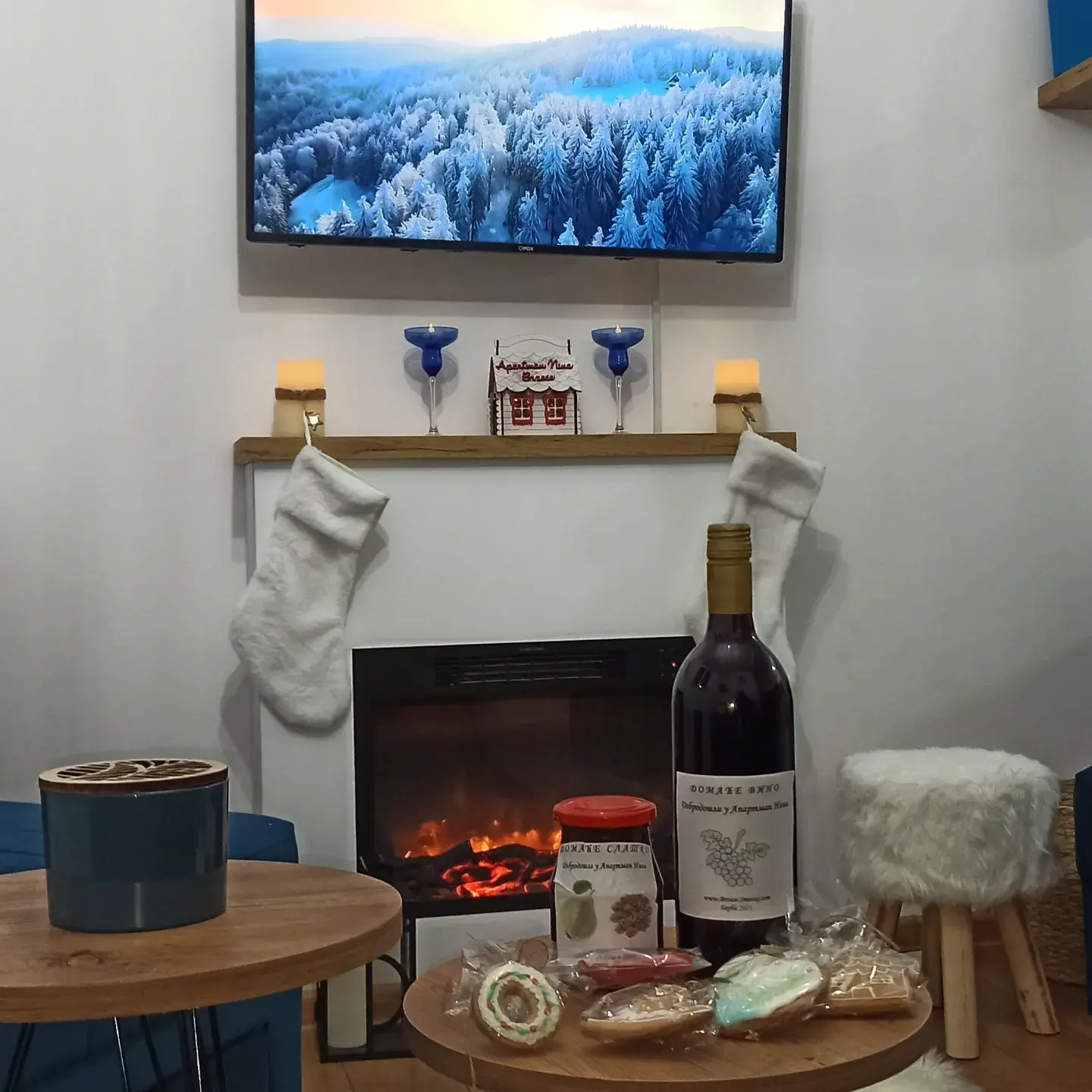 Apartman je potpuno opremljen. Kamin upotpunjuje doživljaj planinskog ambijenta. Opremljen je sa 2 televizora, kablovskim kanalima i WiFi internetom. U kupatilu se nalaze fen i sušač paškira. Kuhinja je potpuno opremljena za pripremanje i služenje hrane, ima tanjire i pribor kuhinjski, ima frižider, indukcionu ploču sa dve ringle, kuvalo za vodu – ketler, toster. Posteljina i peškiri, veliki i mali, za određeni broj ljudi se ostavlja u skladu sa brojem gostiju. Dodatno, u stanu se nalaze pegla i sef za čuvanje stvari. Grejanje je na struju, gost podešava temperaturu.