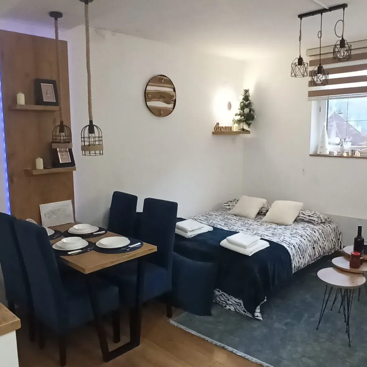 Apartman Nina Kopaonik, naselje Brzeće. IDEALNO ZA SKIJAŠE. Nalazi se kod gondole koja skijaše za 12 minuta vozi na najlepše staze Kopaonika. Smeštaj Nina se sastoji iz dnevne i spavaće sobe. U spavaćoj sobi je veliki francuski ležaj za dve osobe. U dnevnoj sobi je veliki krevet za dve osobe i dva ležaja samca.