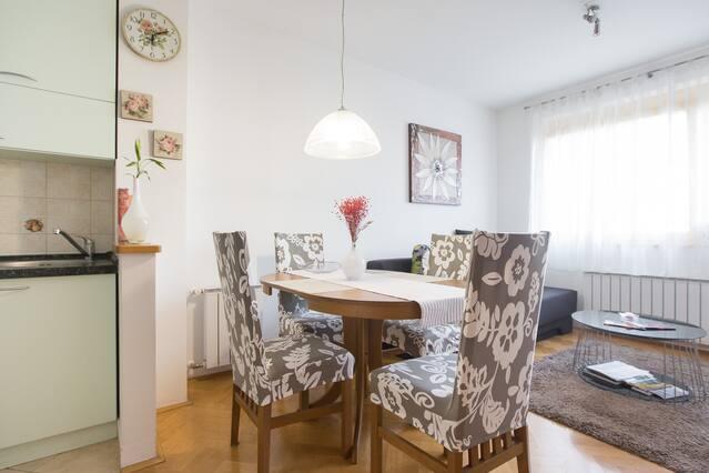 Apartman je udaljen 20 min od centra grada, mirno okruženje puno zelenila.