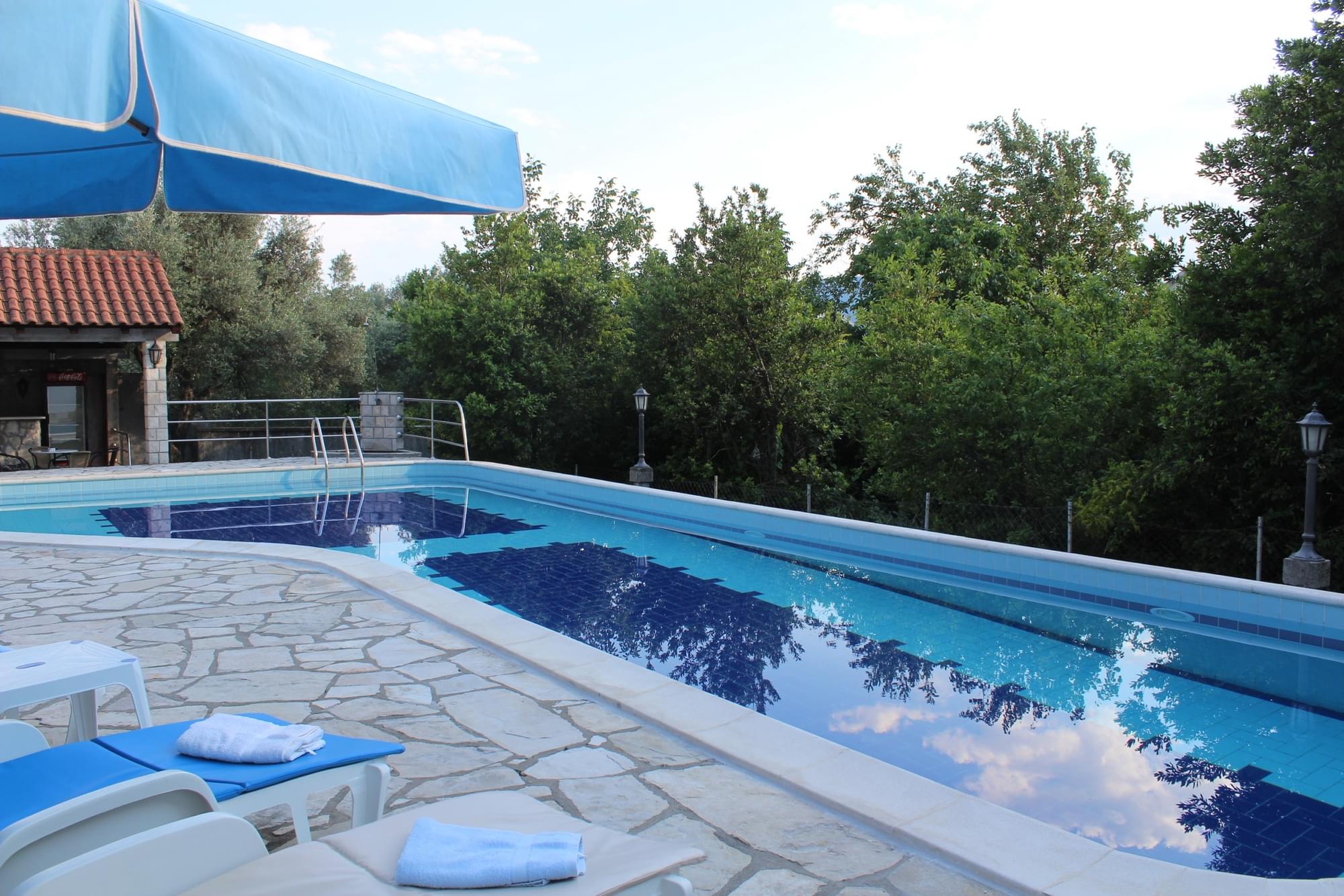 Vila u kojoj se nalaze apartmani je dvospratna, blizu mora, mada ne na samoj obali, tako da je zaštićena od buke i gužve. Smeštena je u prelepom okruženju na mestu gde se uklapaju morski i planinski vazduh. Sa severne strane prostire se šuma prekrivena starim maslinama, a na jugu prelep pogled na more. Prostrano i lepo dvorište, bazen sa đakuzijem, više terasa, roštilj i bar, upotpunjuju ambijent dvorišta. Od prošlog leta gostima su na raspolaganju i novi apartmani u novom objektu odmah pored bazena. Svi apartmani poseduju klima uređaje, tv, kuhinje su potpuno opremljene i poseduju sve što vam je potrebno za komforan odmor. Svi gosti imaju obezbeđen parking. Besplatan internet je dostupan u svim apartmanima, bazenu i dvorištu. Ceo kompleks je jako pogodan za porodice sa decom.