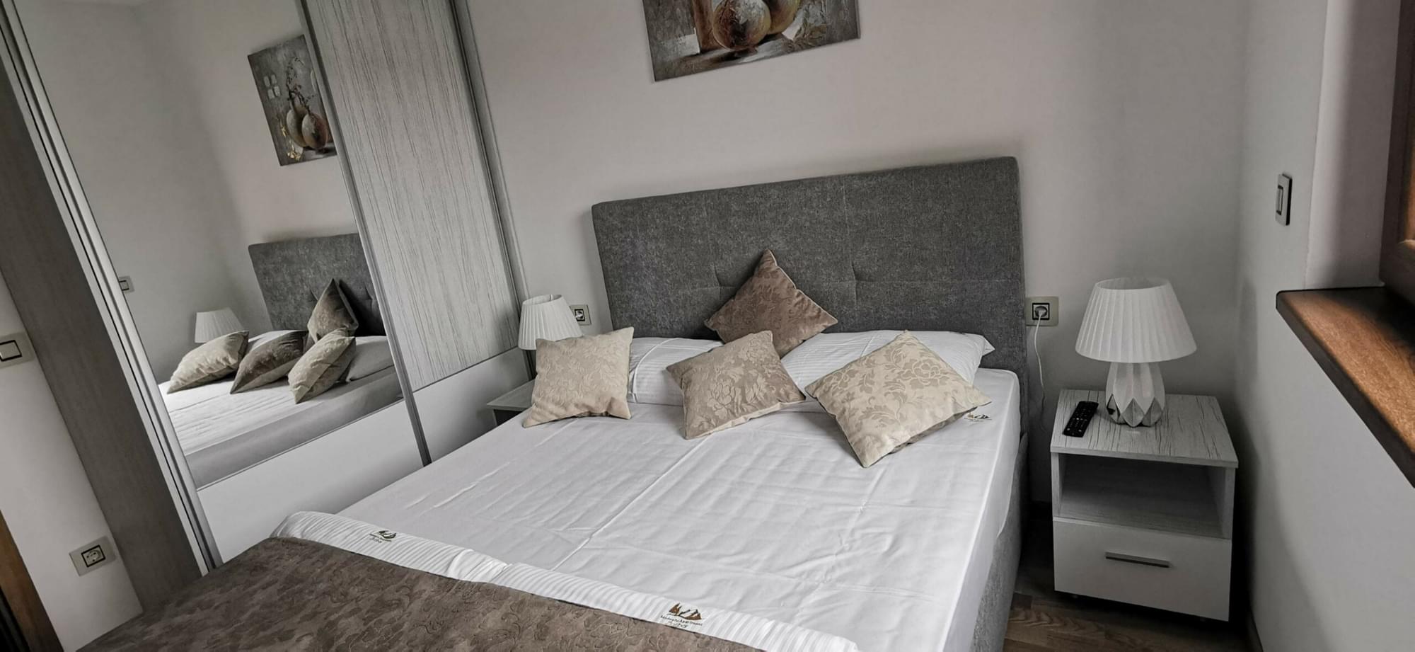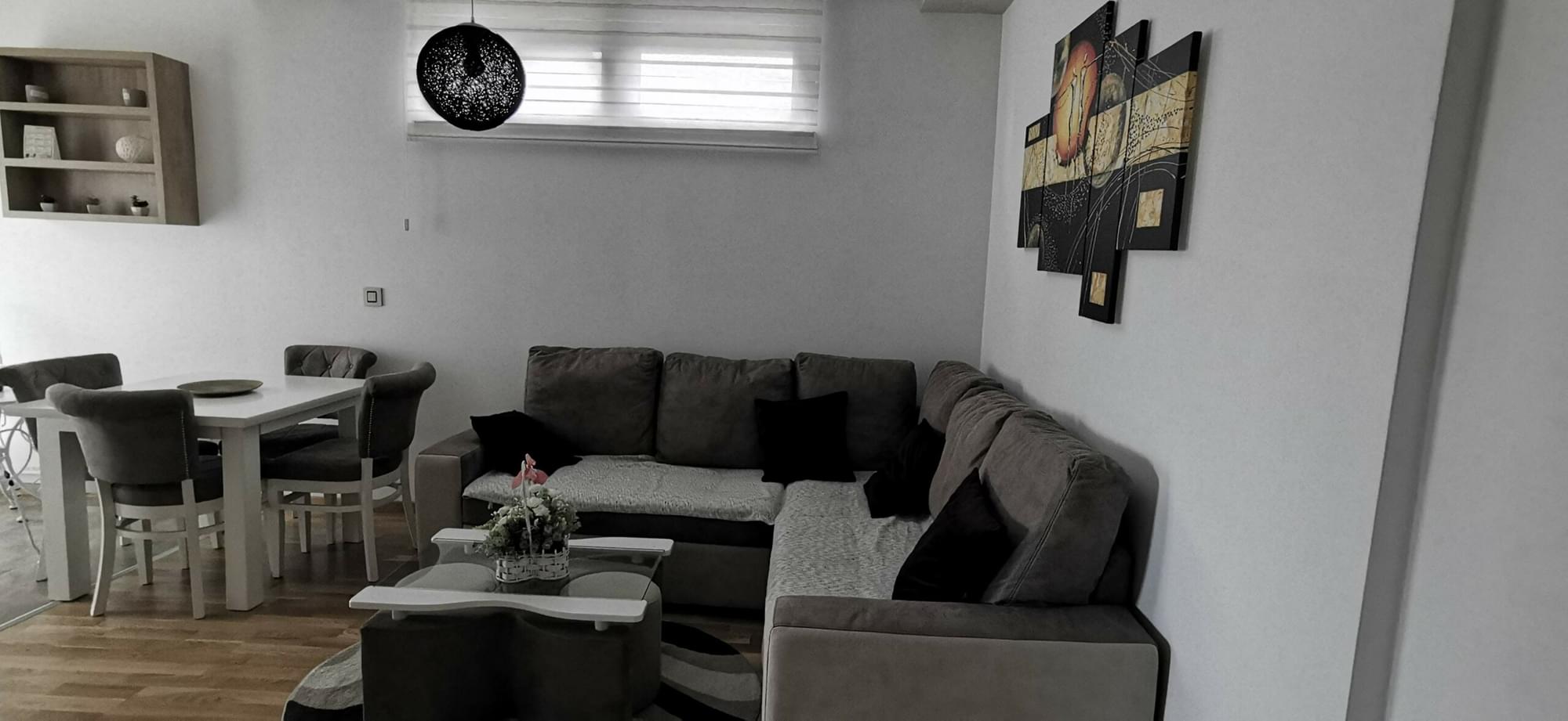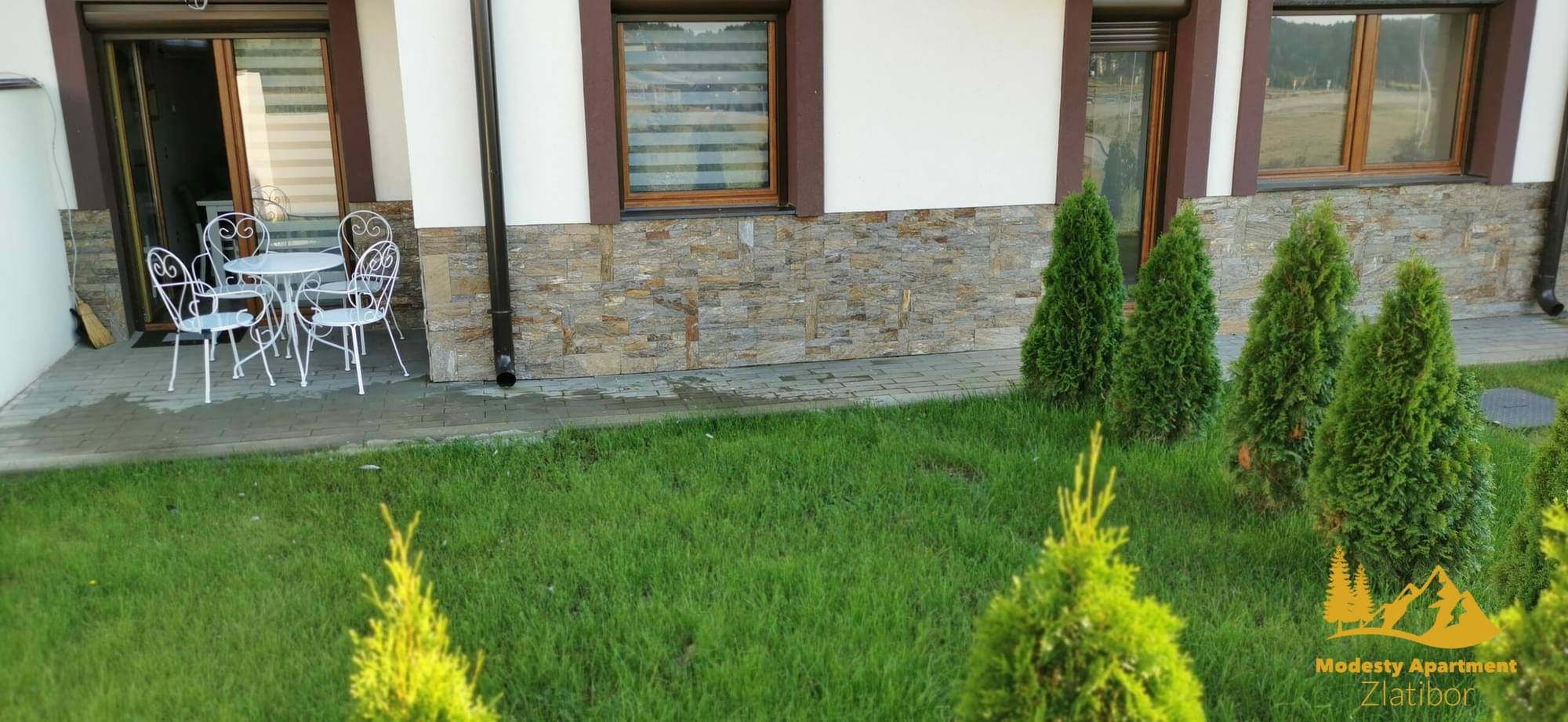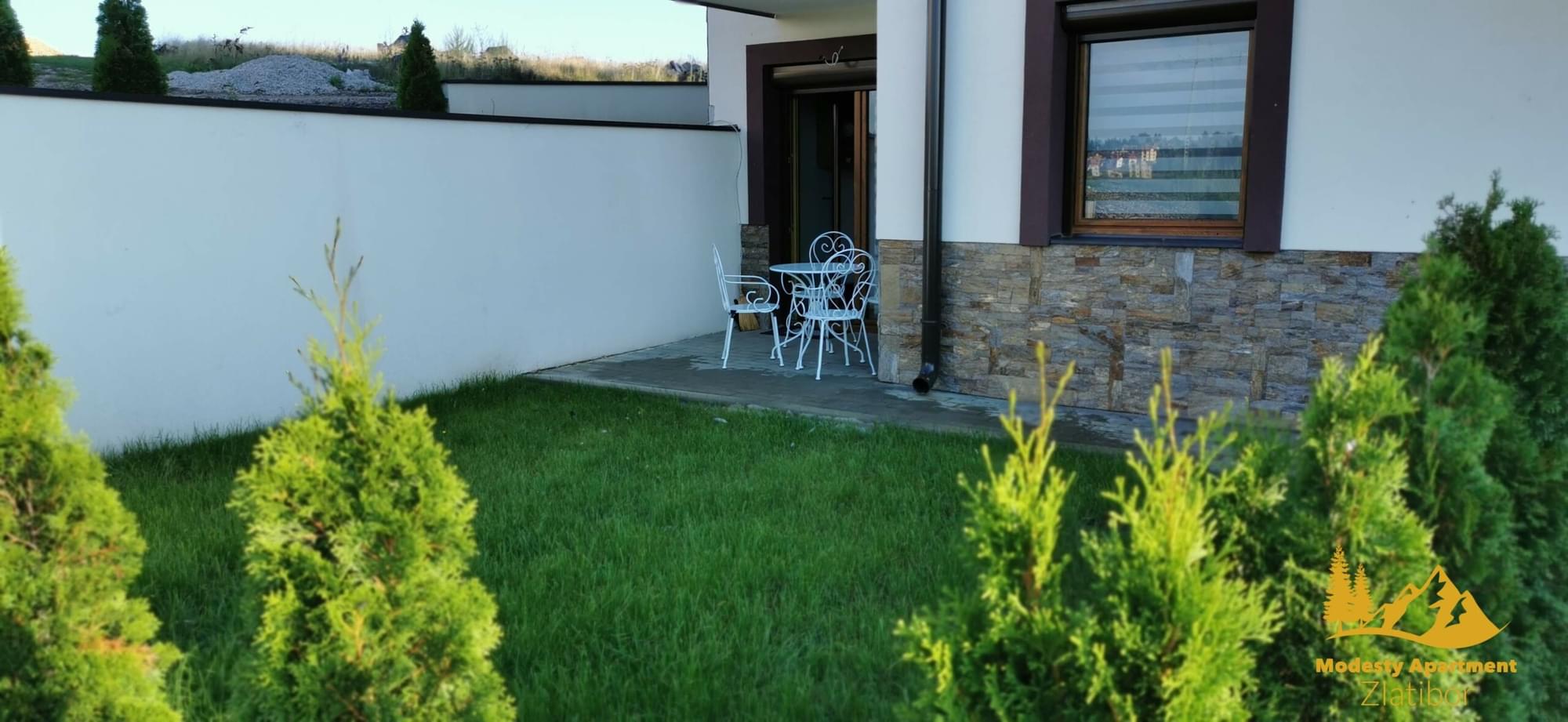 Apartman je potpuno nov. Obuhvata dnevni boravak, trpezariju sa kuhinjom, kupatilo i odvojenu spavaću sobu, kao i ono što retko ko nudi, a to je prelepo dvorište. Apartman može da primi četiri odrasle osobe, a po potrebi daje mogućnost korišćenja kreveca za bebu. Pored dva televizora, besplatnog Wi-Fi-ja, parking prostora, Modesty Apartment zadovoljiće sve one koji traže mir i avanturu.