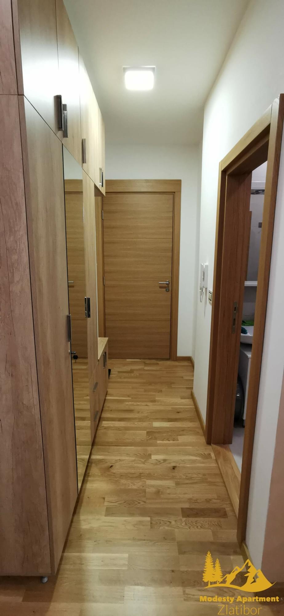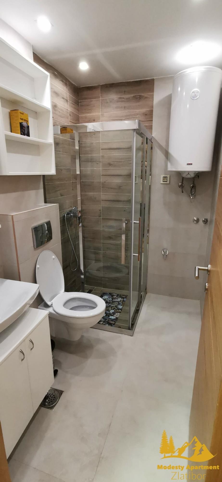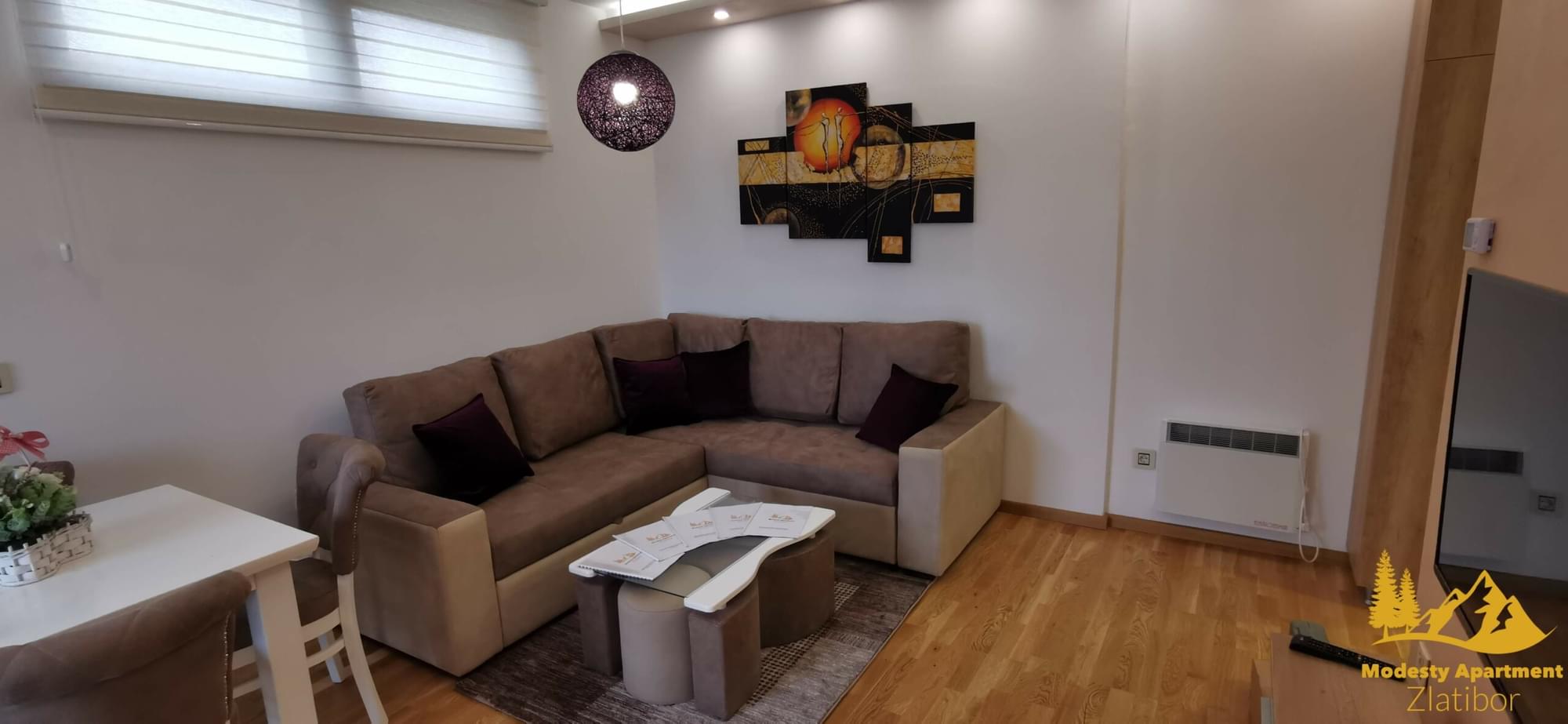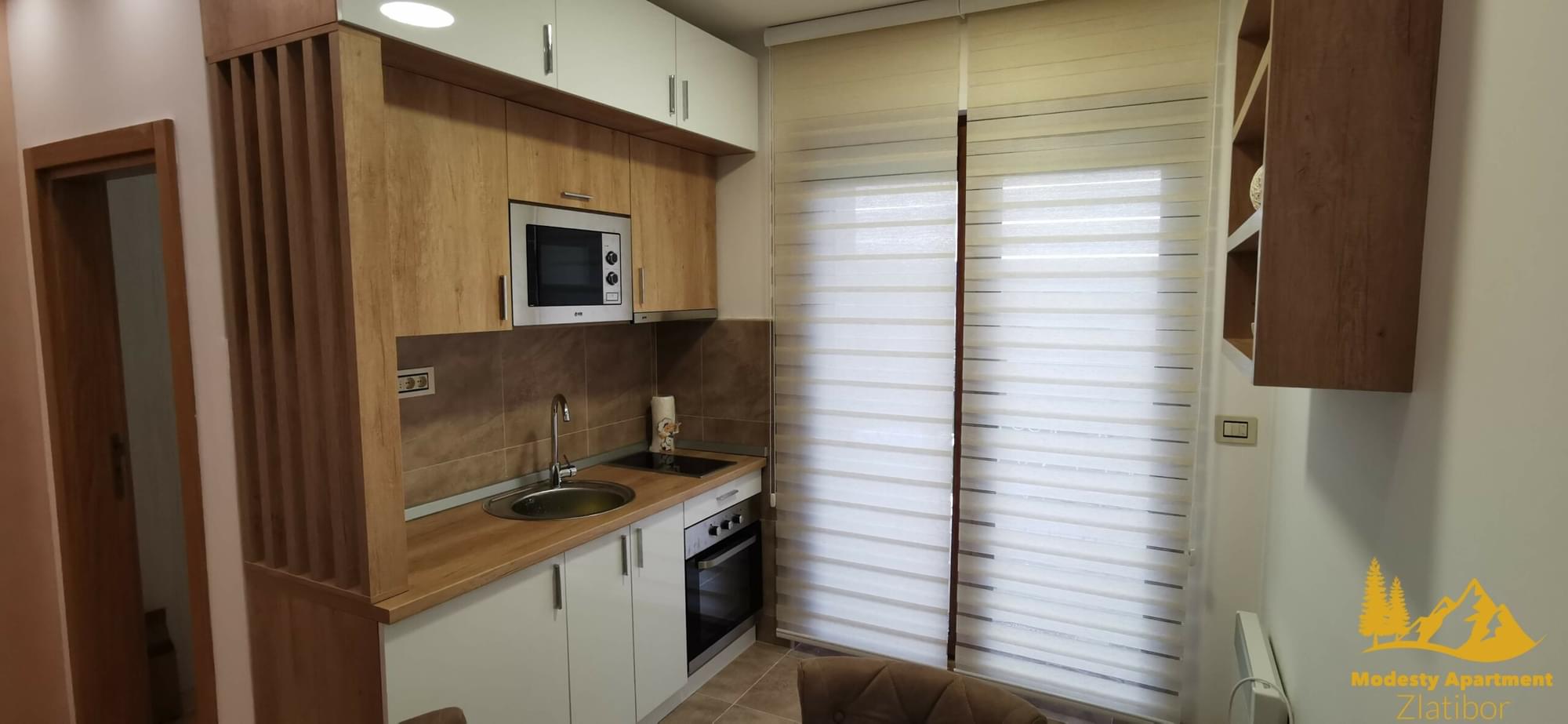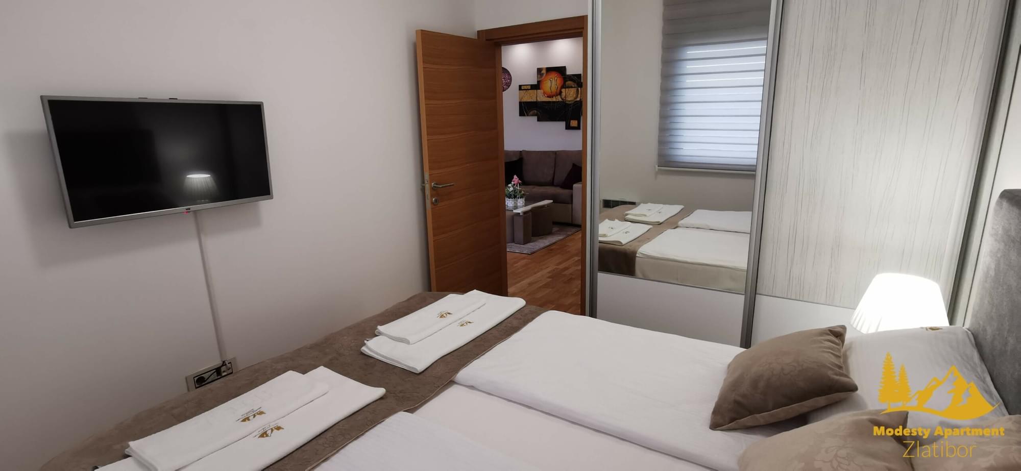 Modesty Apartment nalazi se u mirnom delu Zlatibora, koji stalnim gostima Zlatibora daje potpuno novi pogled na najlepšu planinu u Srbji. U mirnom okruženju predstavlja pravu oazu odmora. Pešačkom i biciklističkom stazom povezan je sa Kraljevim trgom (1,5 km), što pored lepih prizora našim gostima nudi poželjnu, i u ovim uslovima zdravu, fizičku aktivnost.