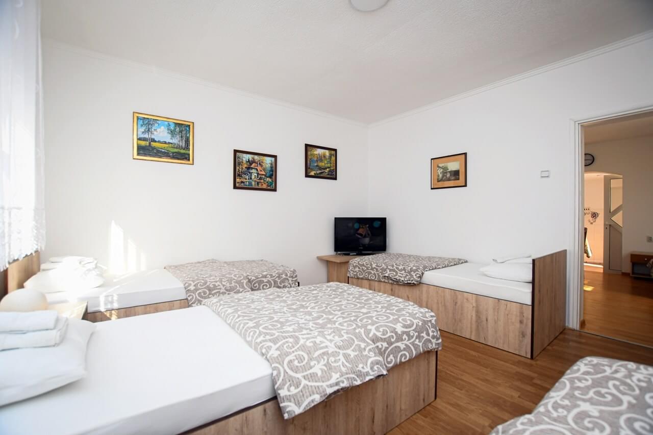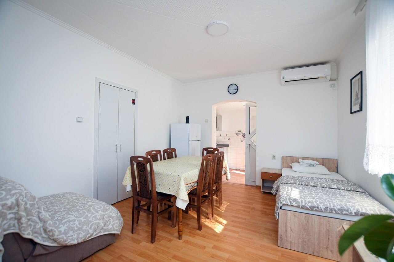 Смештај има своје купање, кухињу опремљену са свим што вам је потребно (фриждер, шпорет, рерна, микроталасна, посуђе и есцајг). У склопу дневног боравка налази се помоћни лежај и један лежај. Спавача соба поседује 4 појединачна лежаја. Ако вам је потребна пегла или веш машина, можете користити у склопу овог смештаја. Као неизоставне ставке данашњице, ова кућа за одмор има ВИ-ФИ, клима уређај и кабловску телевизију.
