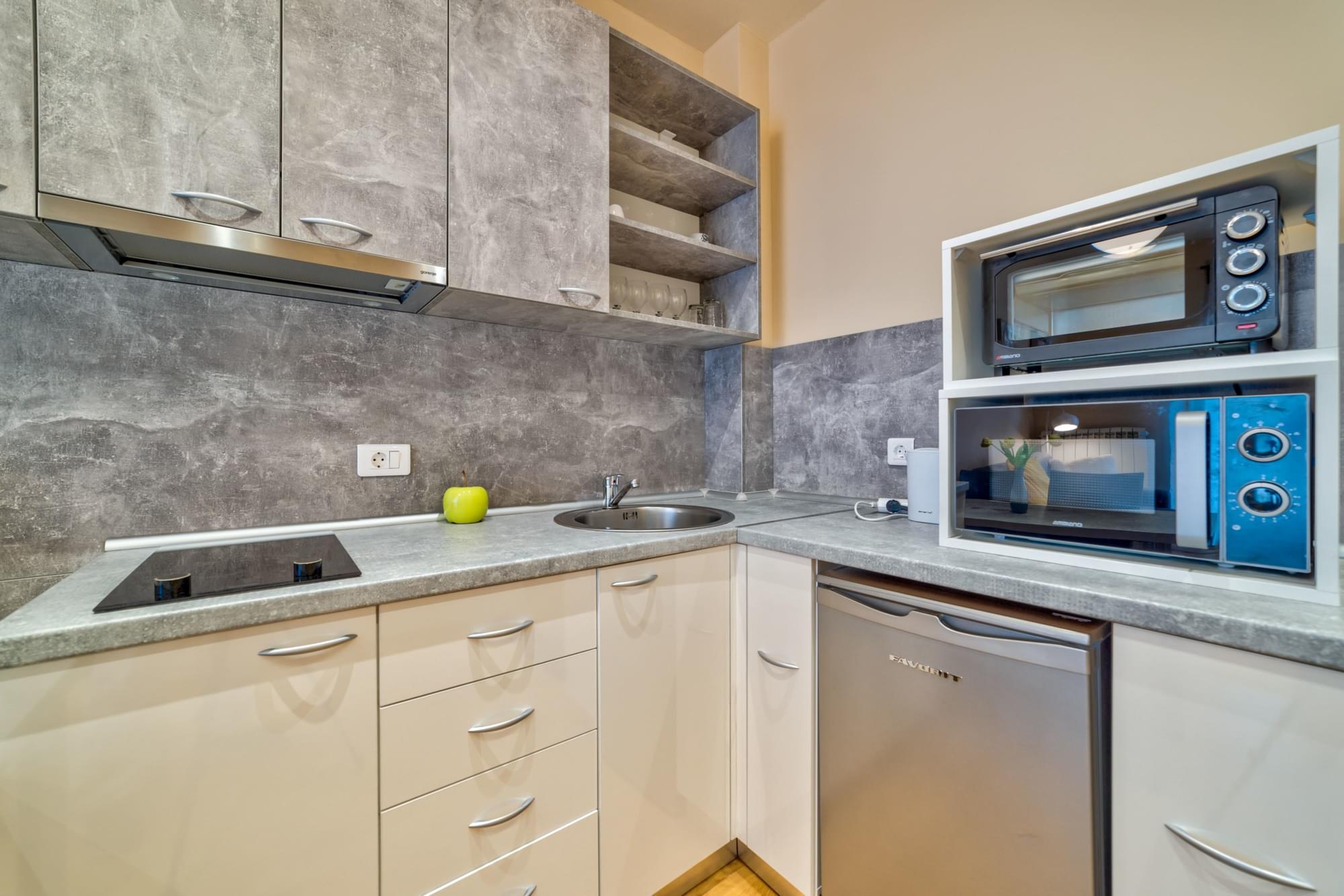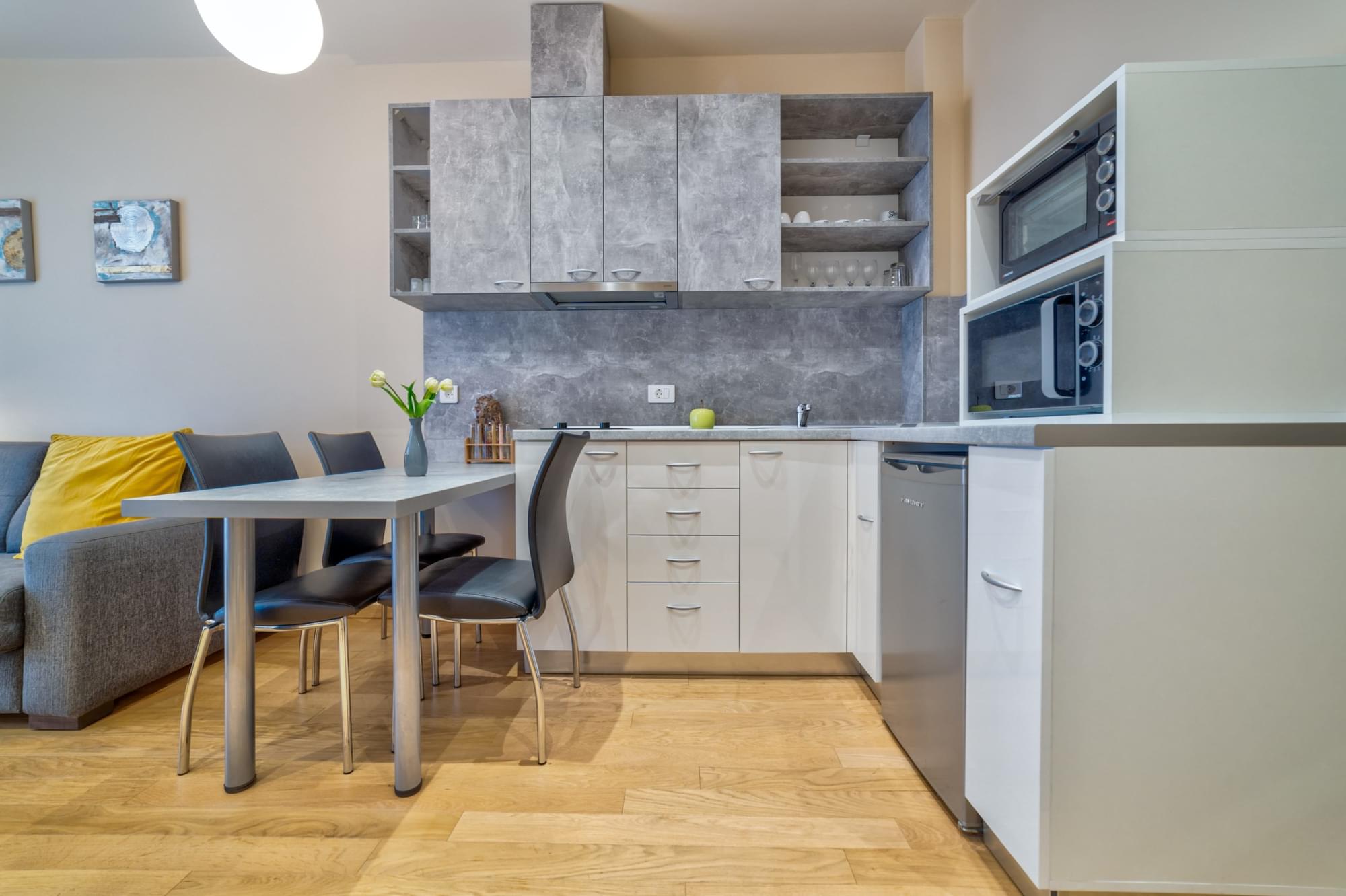 Ovaj apartman ima 1 spavaću sobu, trpezariju, potpuno opremljenu kuhinju i kupatilo.