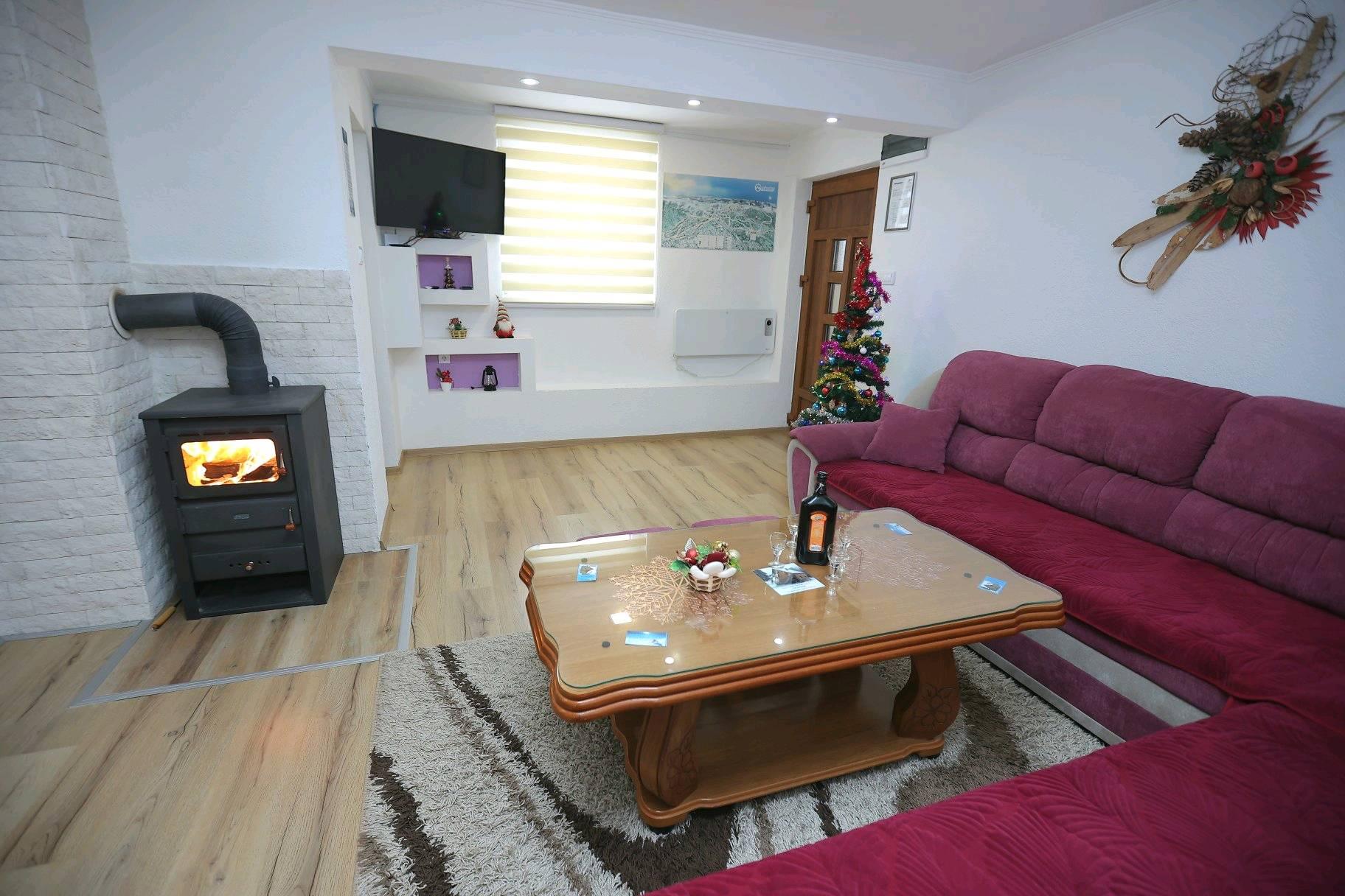 Apartman “Strahinja 1” sadrži: veliki dnevni boravak sa uglom koji se razvlači (spavanje dvije osobe), kuhinju, trpezariju, dvije trokrevetne sobe, kupatilo sa tuš kabinom, skijašnicu. Grijanje na struju i po želji kamina (drva obezbjeđena). Kablovska TV, brzi WiFi internet. Parking ispred objekta.