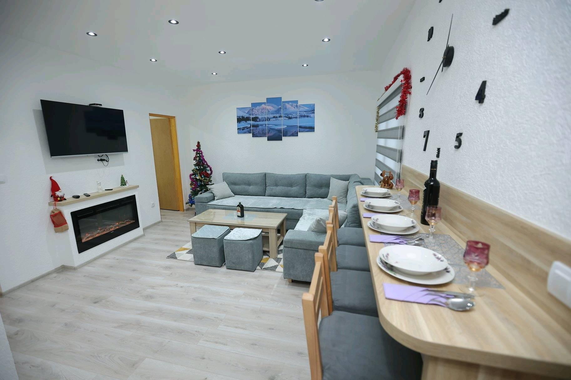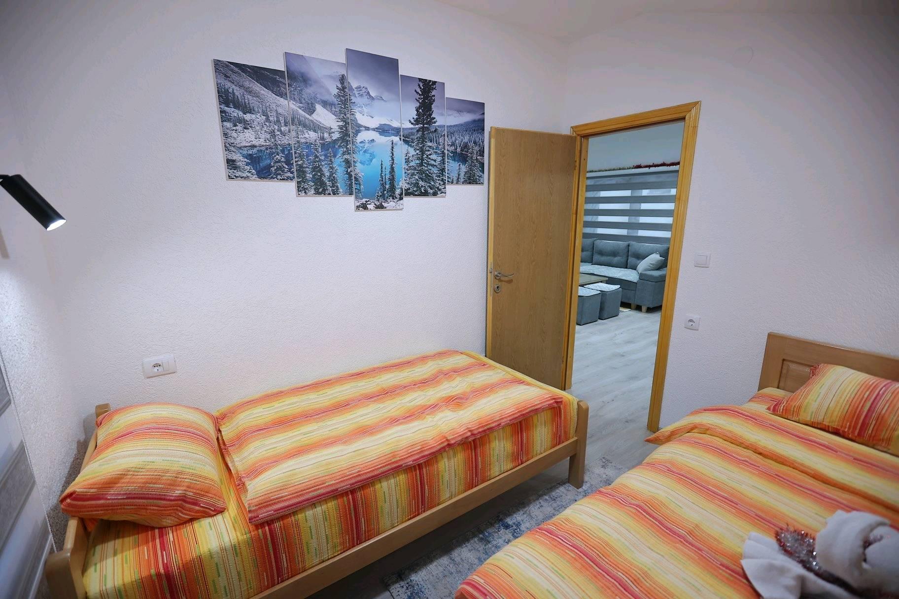 Apartman “Strahinja 4” sadrži: dnevni boravak sa uglom koji se razvlači (spavanje dvije osobe), kuhinju, dio za ručavanje, dvije trokrevetne sobe, kupatilo, skijašnicu. Kablovska TV, brzi WiFi internet. Grijanje na struju. Parking ispred objekta.