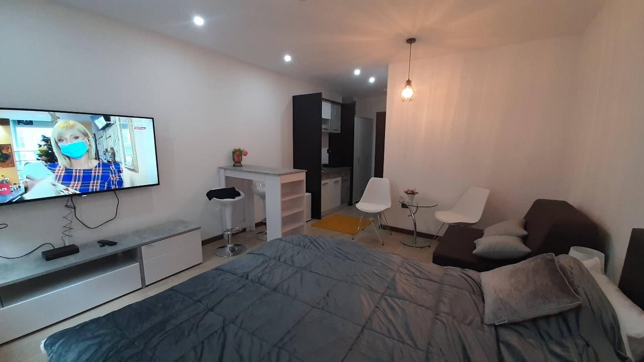 Apartman studio Bjanka se nalazi u novootvorenom krilu hotela na Kopaoniku. 25 kvadrata. Moderno namešten. Podesan za 3 odrasle osobe ili par sa malom decom. Poseduje 1 bračni krevet i jednu fotelju na razvlačenje.