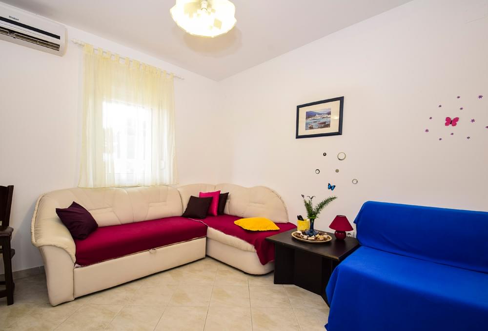 Kompletno uređen apartman nalazi se u prizemlju kuće, na udaljenosti od 70 m od mora, u mirnom dijelu Zatona. Gostima na raspolaganju su dvije vrste plaža: pijesak i šljunak, kao i ljekovito blato u kojem mogu uživati besplatno.