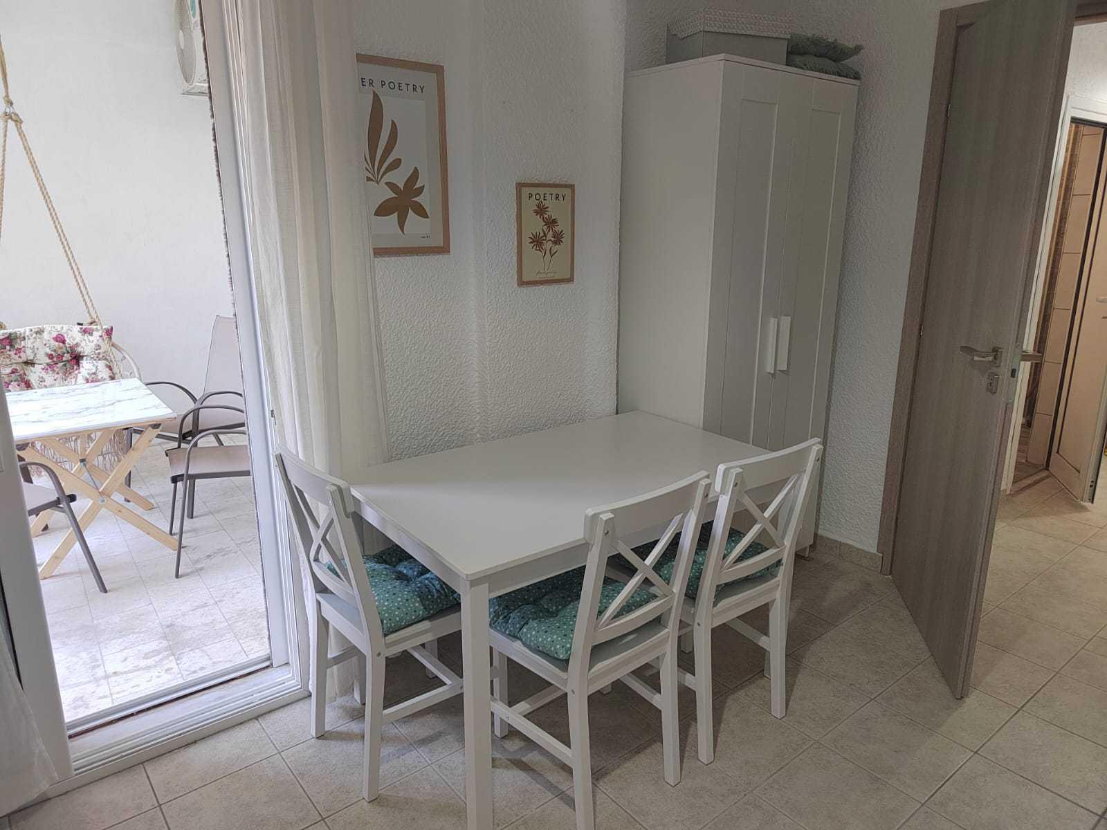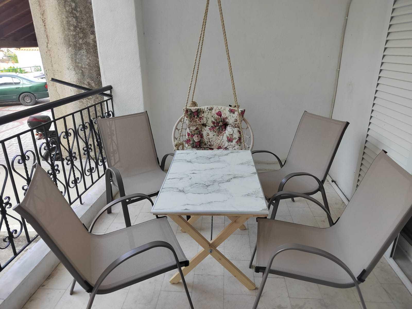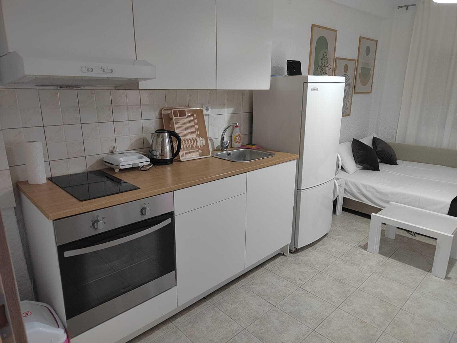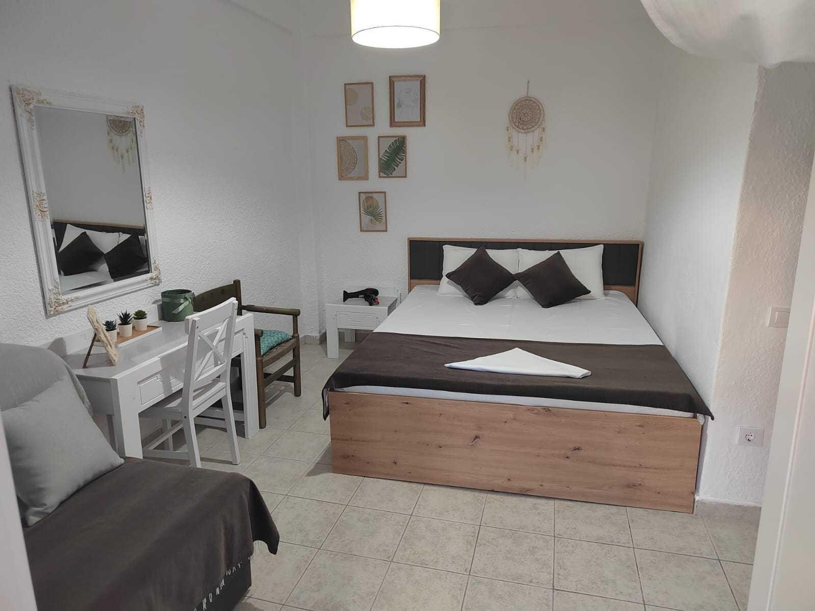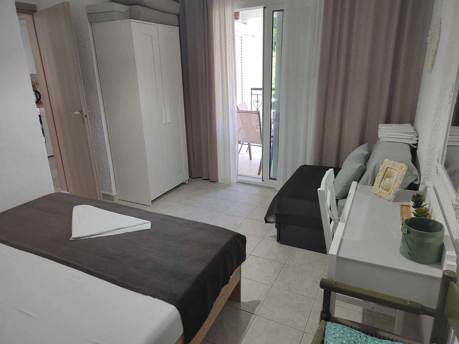 Smeštaj se nalazi u centru pored male fontane na visokom prizemlju, na 150m od mora. Apartman se sastoji od dve sobe, kupatila i kompletno opremljene kuhinje. Jedna soba je opremljena francuskim ležajem i foteljom koja ima mogućnost rasklapanja dok je druga opremljena ugaonom garniturom koja, takođe, ima mogućnost rasklapanja. Obe sobe imaju izlaz na prostranu terasu. Apartman je kompletno renoviran.