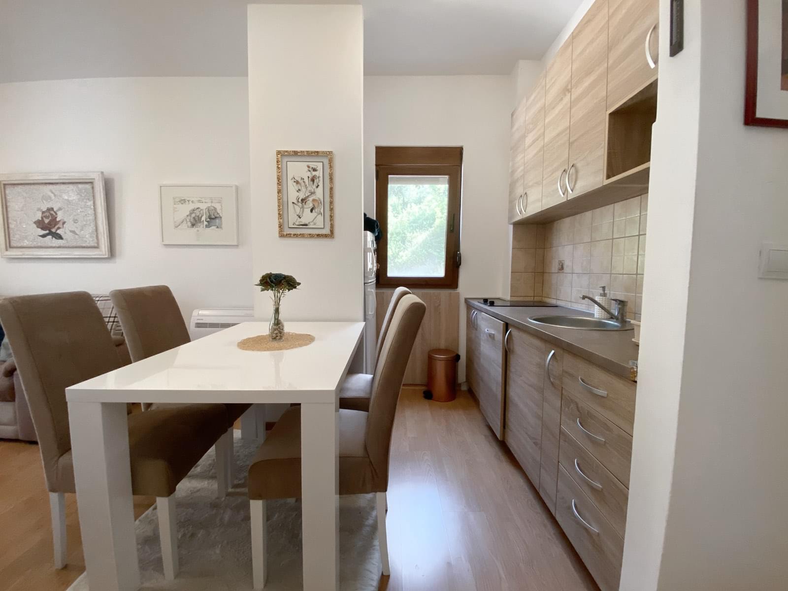 Nalazi se na drugoj etaži stambene zgrade koja posjeduje lift. Apartman posjeduje besplatno garažno mjestu u objektu