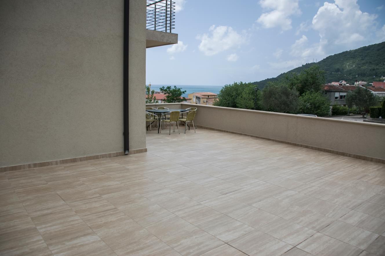 Apartman posjeduje dvije prostorane sobe (dnevnu i spavaću), dva kupatila s tuš kadom, te veliku terasu s pogledom na more. U okviru dnevne sobe su kuhinja i trpezarija, te kauč koji se može pretvoriti u ležaj za dvoje. U spavaćoj sobi nalazi se novi francuski ležaj (jumbo).