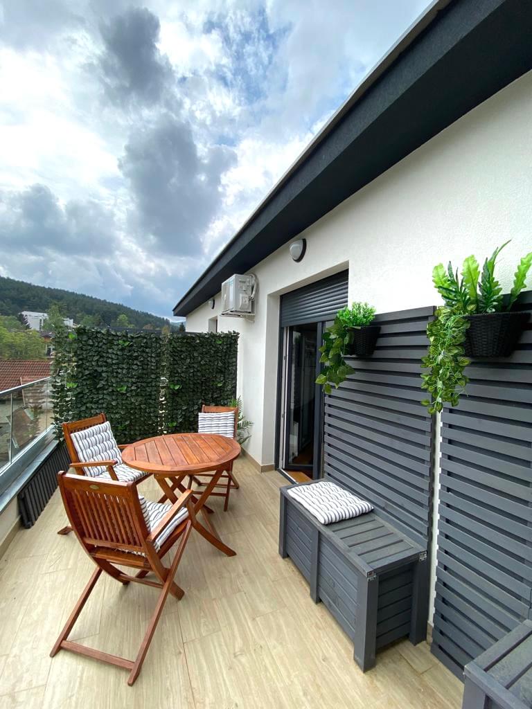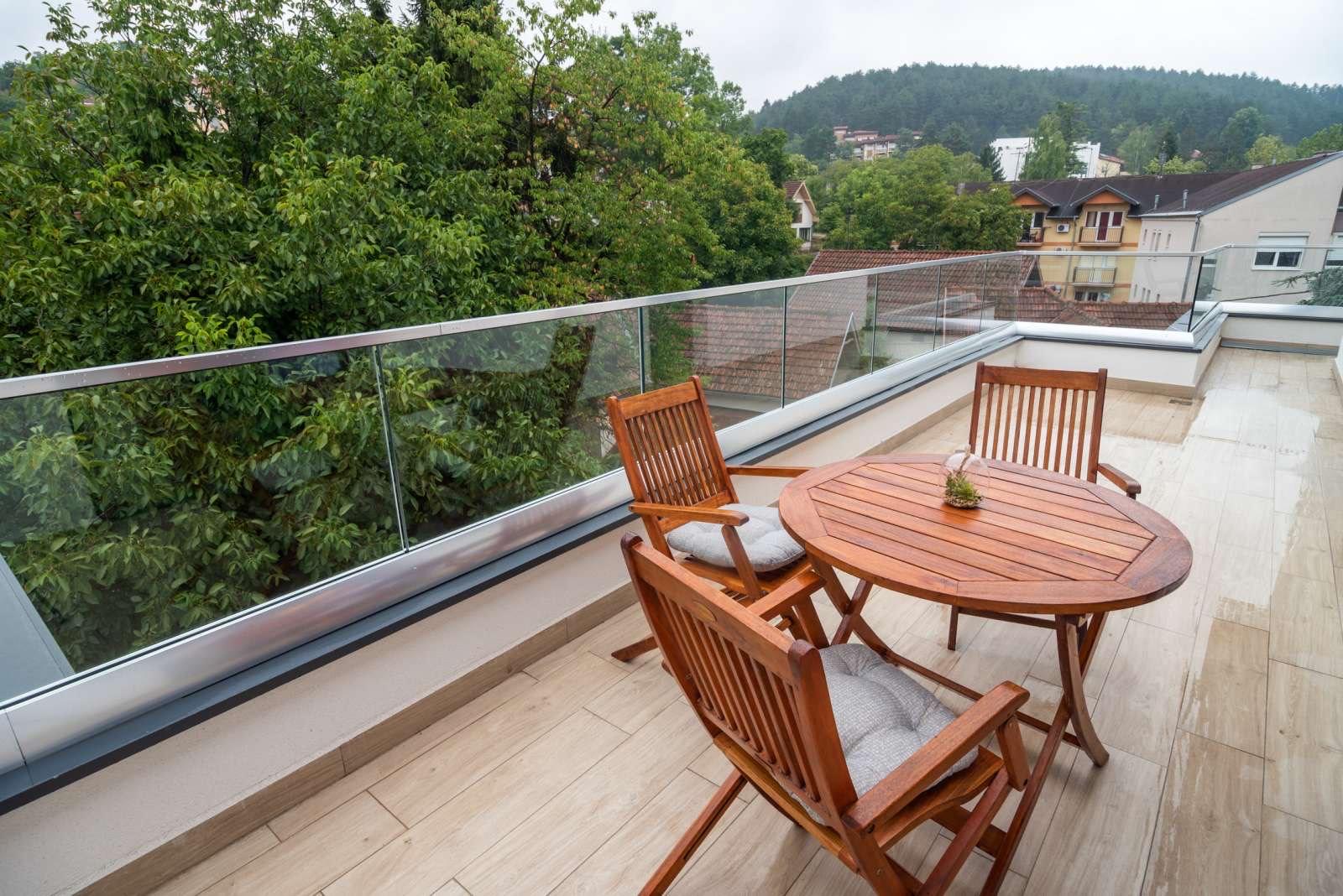 Brand new Lux apartment on the promenade of Vrnjačka Banja near Snežnik. Accepts up to 3 people. Air-conditioned apartment with double bed and two-seater, fully equipped kitchen (built-in hob, refrigerator, microwave, dishwasher ...), bathroom with shower, cable TV, Wi-Fi (free internet). Large terrace overlooking the Spa, where you will enjoy your first morning coffee and sunset. Guests of the apartment are provided with parking. The building has an elevator.