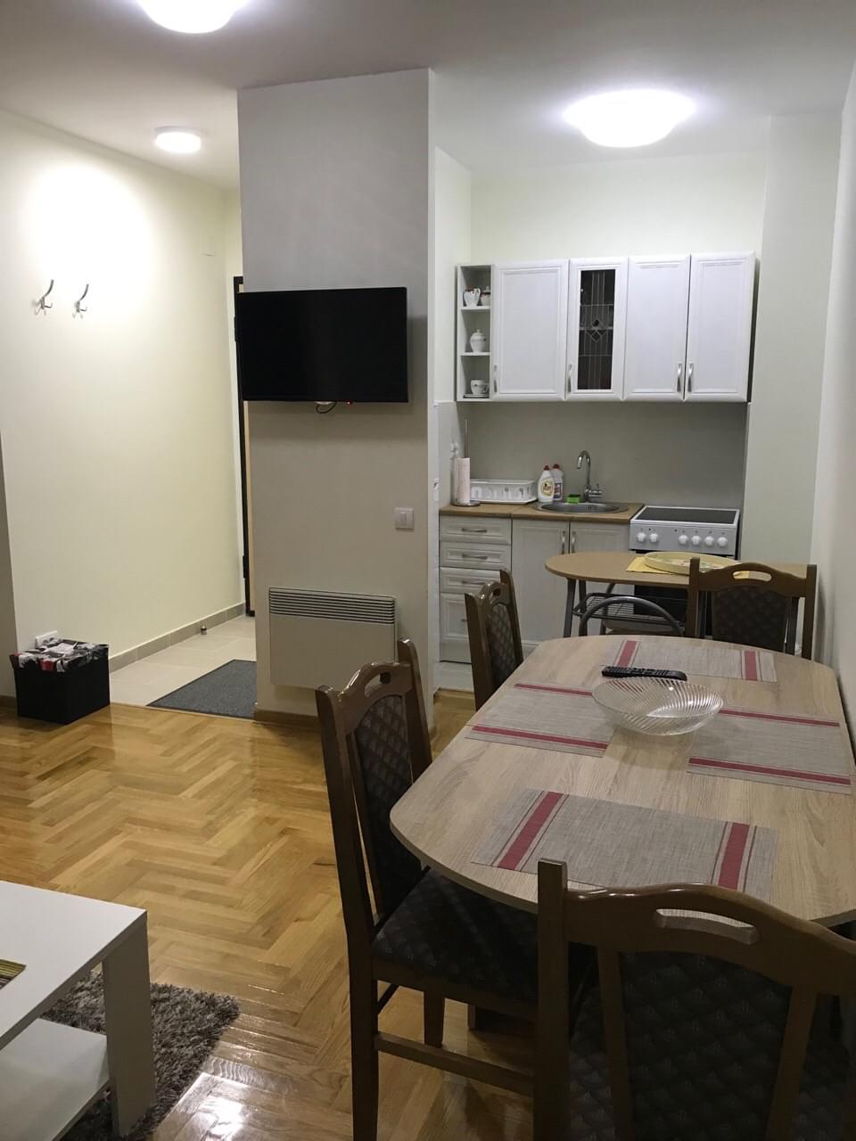 Apartman za 2-4 osobe, udaljenost od centra 5 minuta, 3. sprat, balkon i lijep pogled. Sve što vam treba imate u apartmanu.
