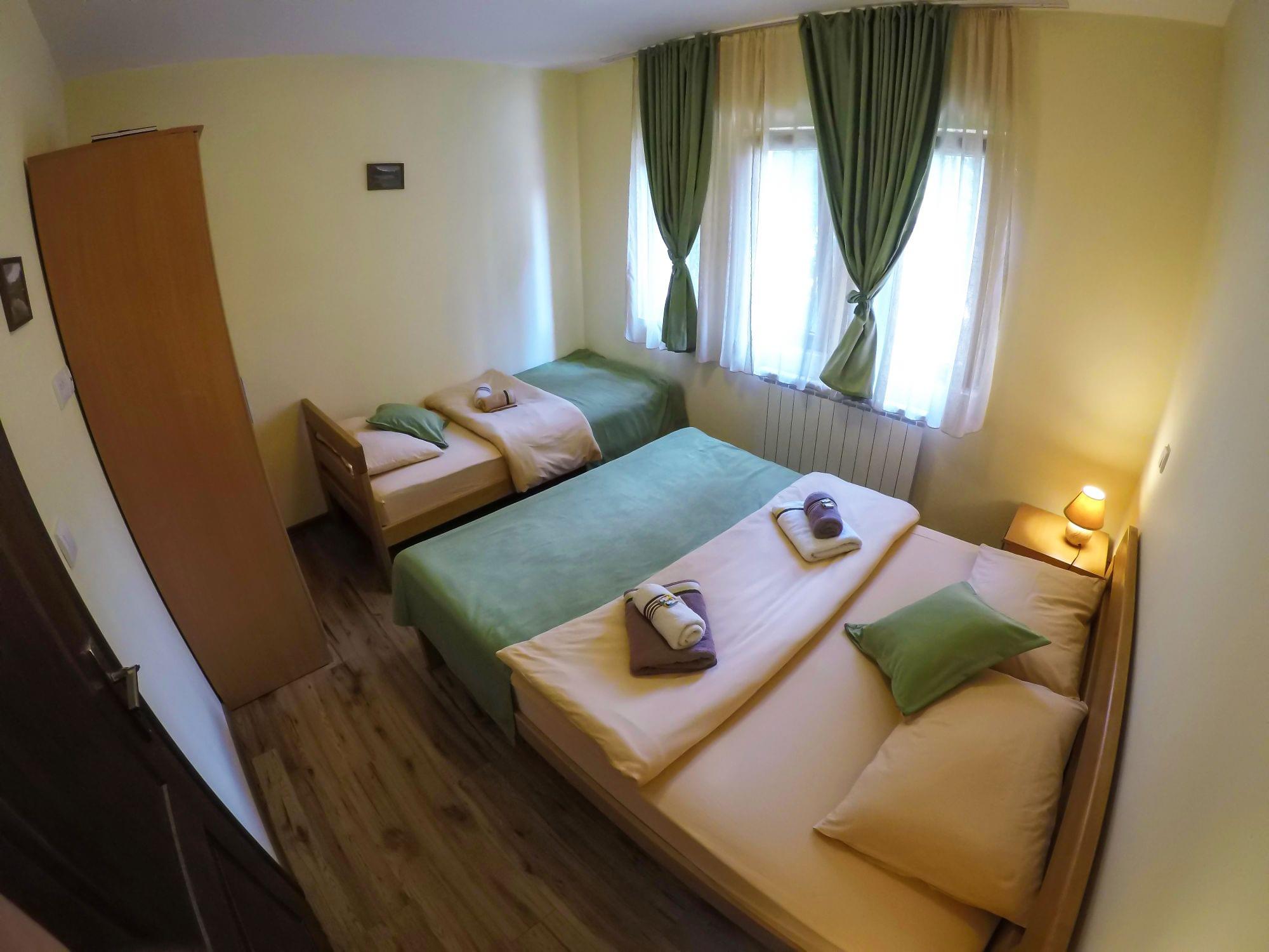 Odvojena spavaća soba posjeduje jedan bračni i jedan singl krevet. Kupatila su opremljena peškirima i fenom za kosu. Svaki apartman posjeduju terasu, sa pogledom na borovu šumu. Takođe, svim gostima je obezbijeđen je i besplatan WiFi internet.