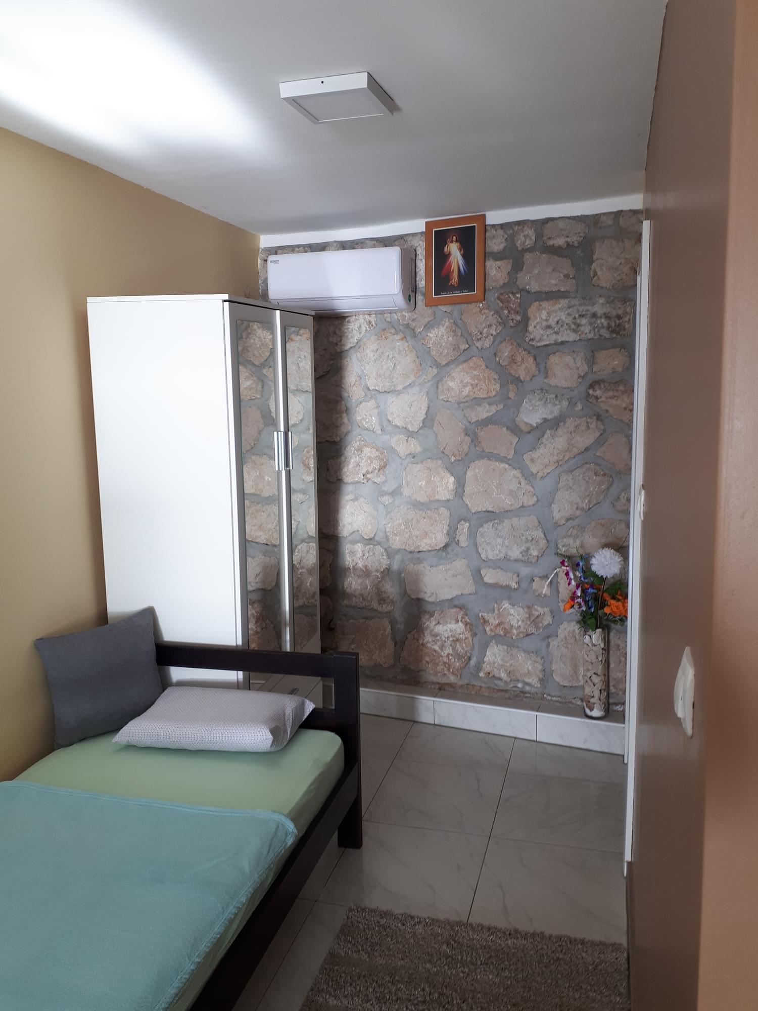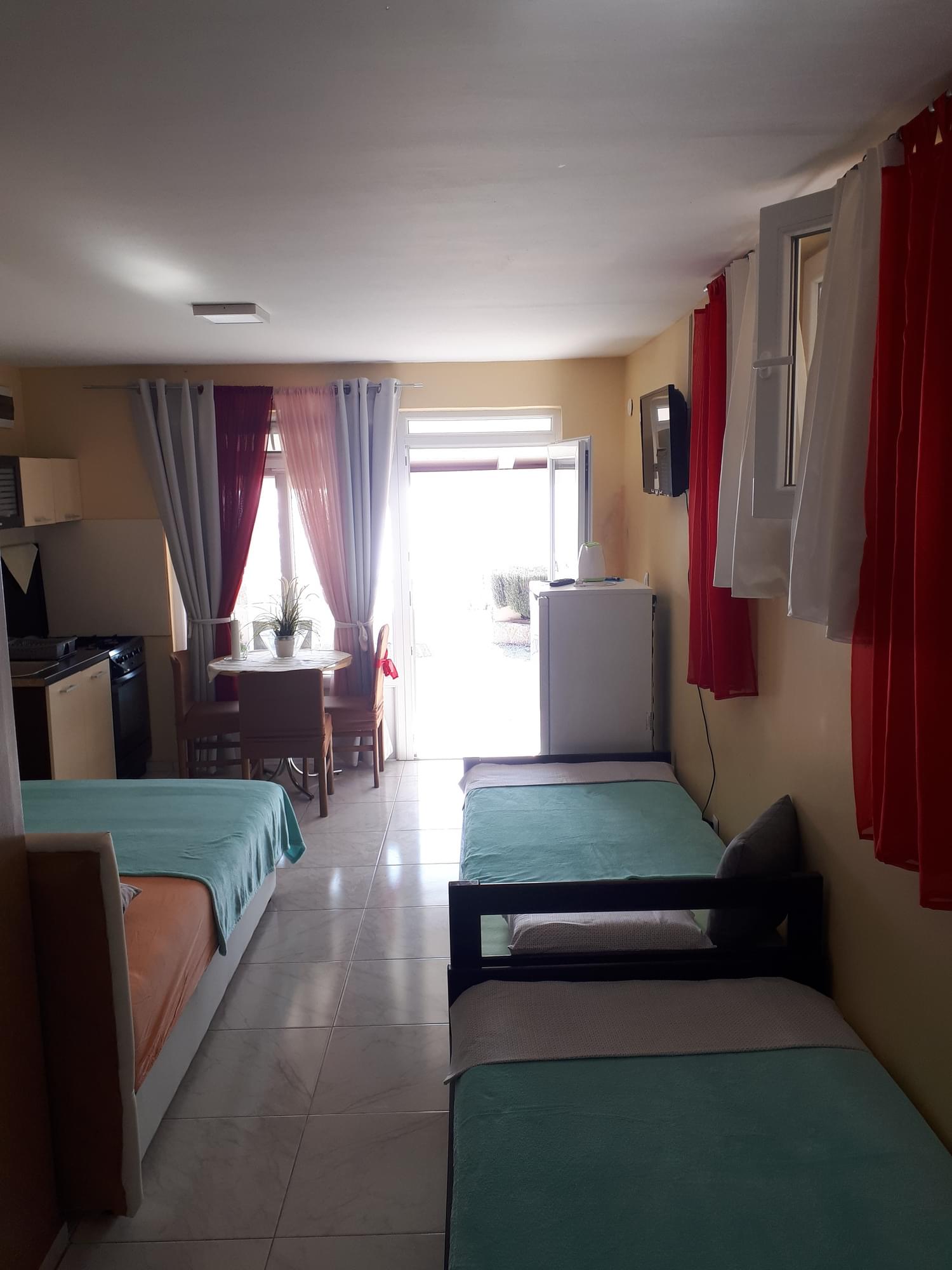 - 2 single beds and 1 large double bed