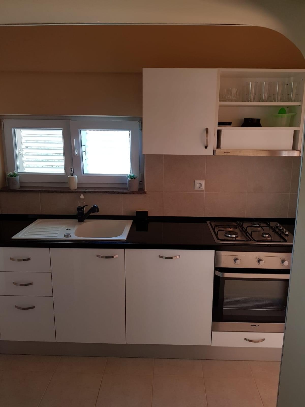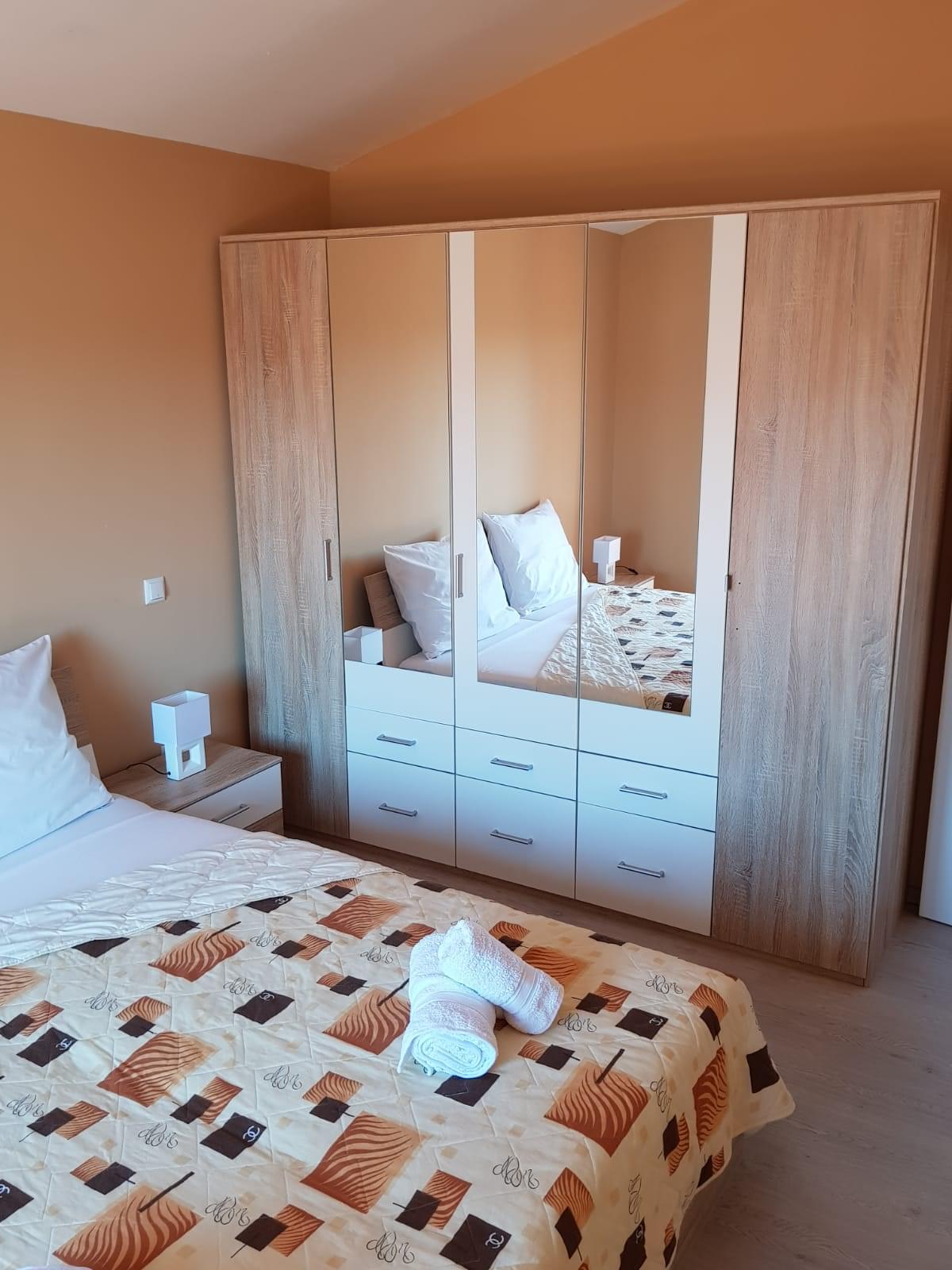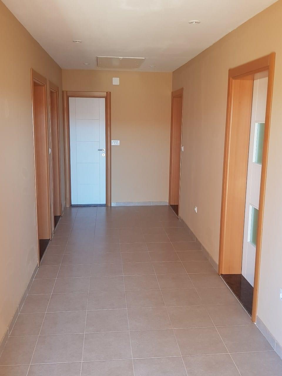 Kuća sa dva nova velika apartmana, svaki po 98 m2, tri spavaće sobe, kupaonica, jelna soba, dva dnevna boravka, kuhinja. Klima terasa s pogledom na more i planinu. 100m udaljenosti do plaže pogodno za malu djecu. Malo i mirno mjesto, blizu Zadra.