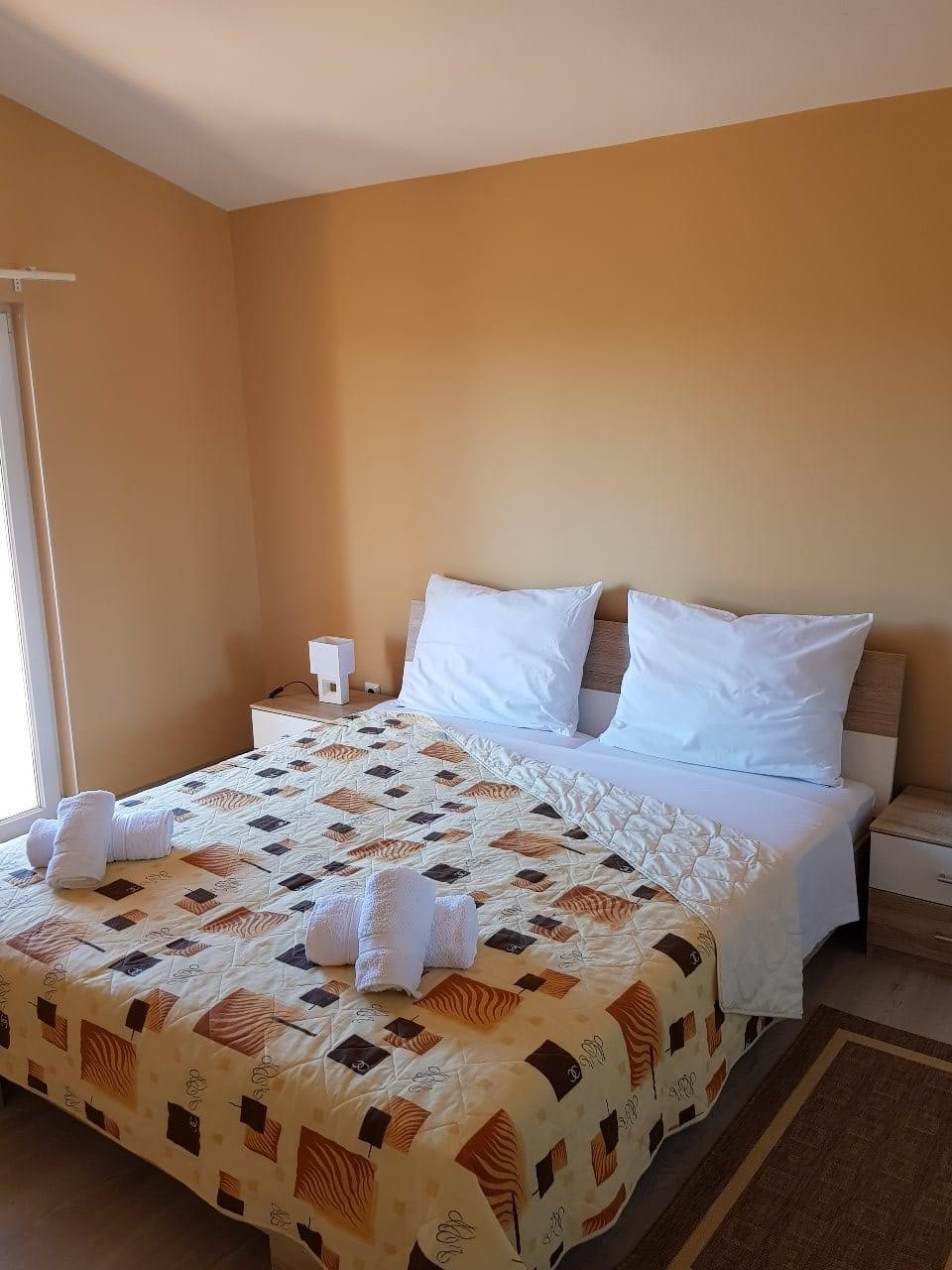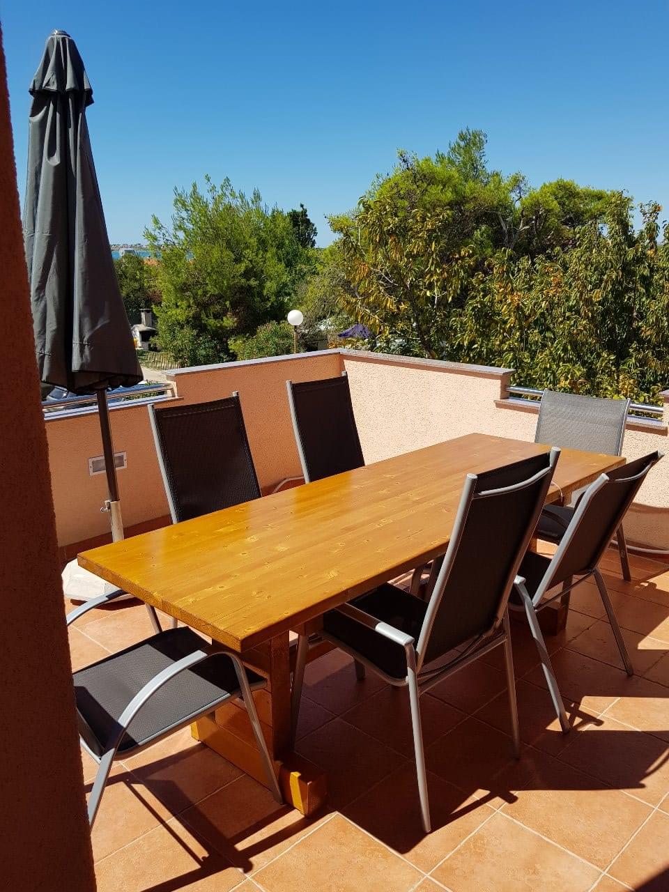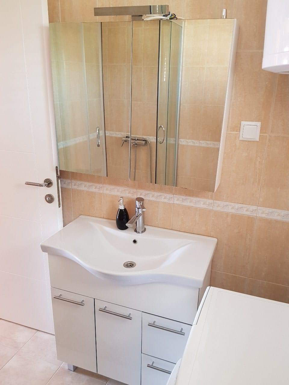 Kuća sa dva nova velika apartmana, svaki po 98 m2, tri spavaće sobe, kupaonica, jelna soba, dva dnevna boravka, kuhinja. Klima terasa s pogledom na more i planinu. 100m udaljenosti do plaže pogodno za malu djecu. Malo i mirno mjesto, blizu Zadra.