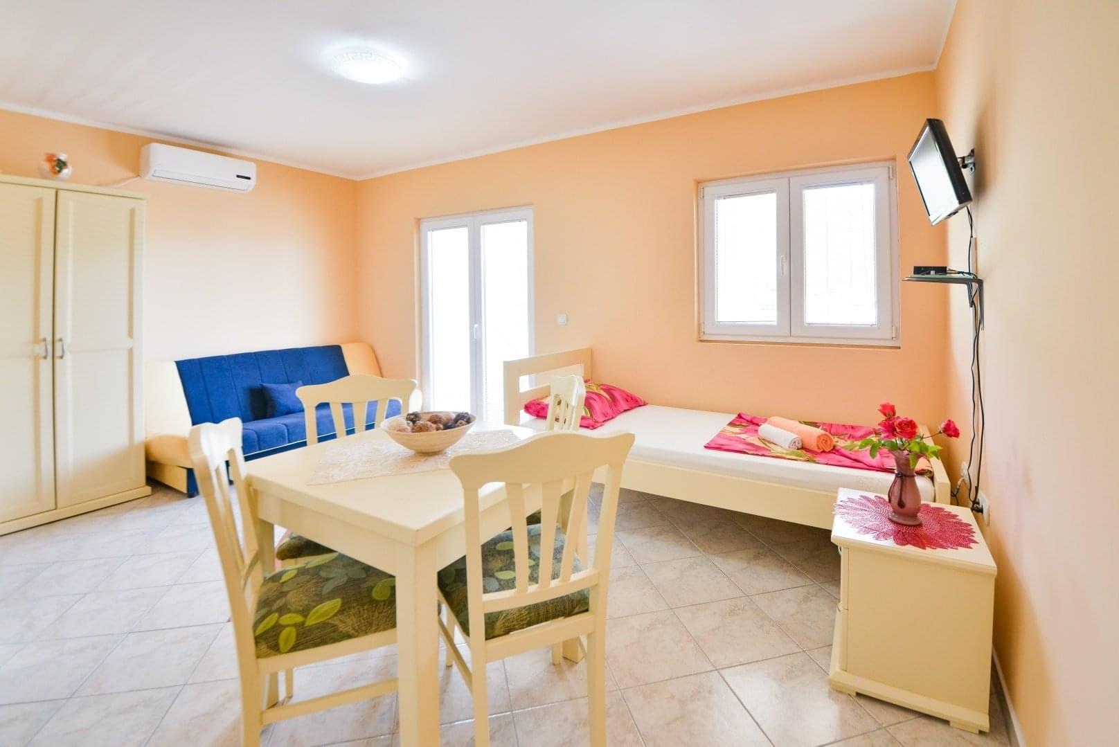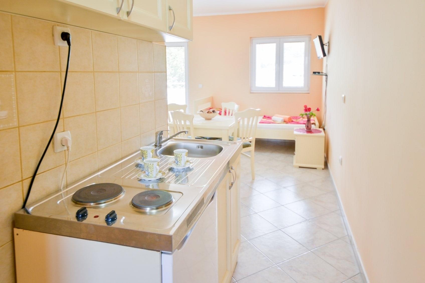 Posedujemo 16 apartmana koji su luksuzno opremljeni. Svi apartmani poseduju klima-uređaje i LCD televizore sa Total TV. Svaki apartman ima izlaz na terasu. Veći apartmani imaju veću tarasu sa ležaljkama za sunčanje i manju za sušenje peškira.
