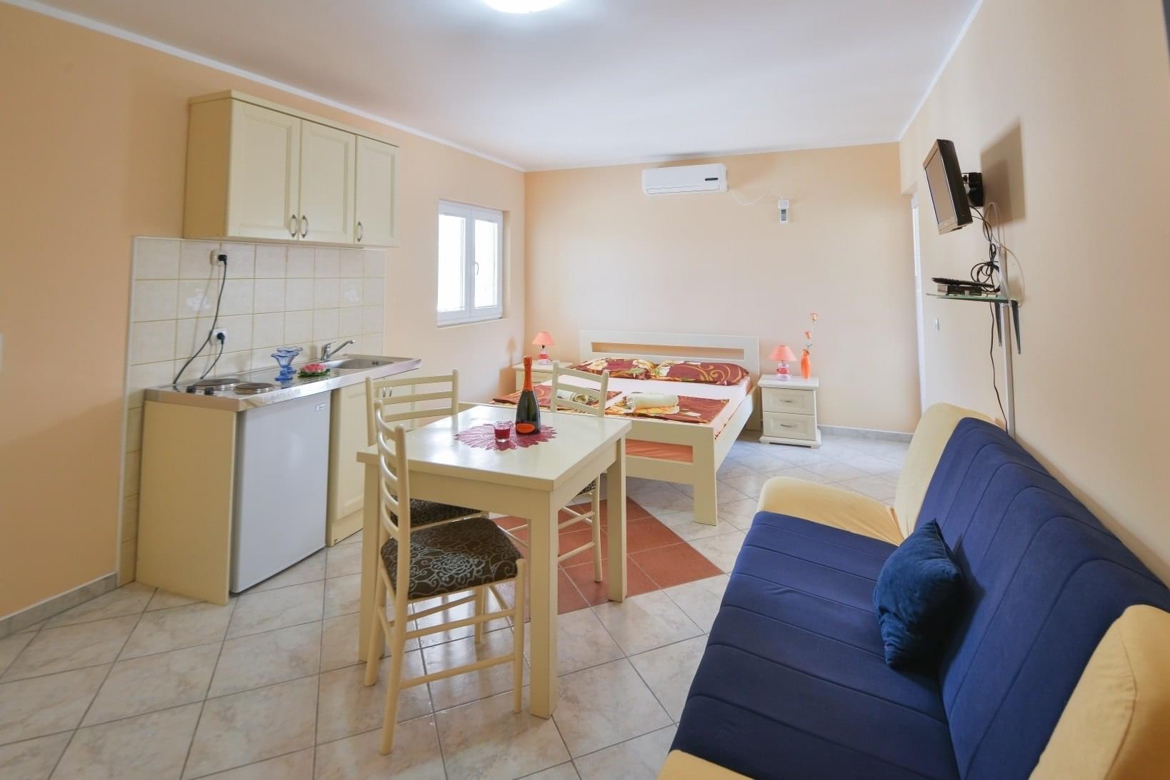 Posedujemo 16 apartmana koji su luksuzno opremljeni. Svi apartmani poseduju klima-uređaje i LCD televizore sa Total TV. Svaki apartman ima izlaz na terasu. Veći apartmani imaju veću tarasu sa ležaljkama za sunčanje i manju za sušenje peškira.