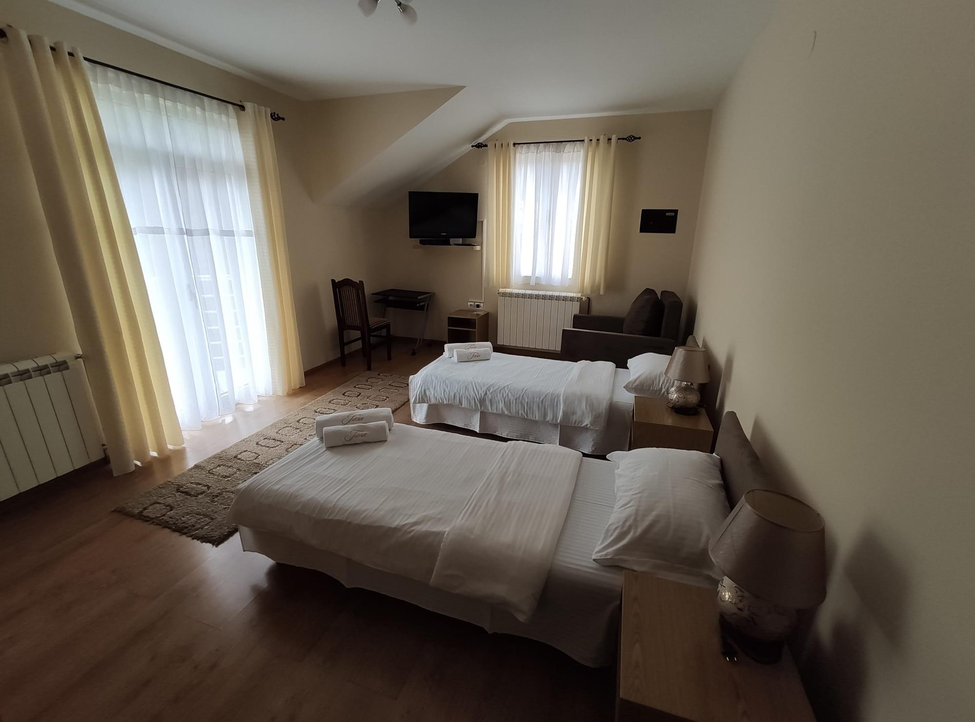 Nalazimo se u Pljevljima, sjever Crne Gore, na tranzitnom putu Podgorica-Beograd, uz samu magistralu. Hotel ima 10 soba sa restoranom od 80 mjesta i 100 mjesta terasa. Moderno uradjene sobe. Svaka soba ima wc. Sobe mogu biti jednokrevetne, dvokrevetne, trokrevetne, četvorokrevetne i apartmani. Svaka soba ima wi-fi, klimu, televizor.