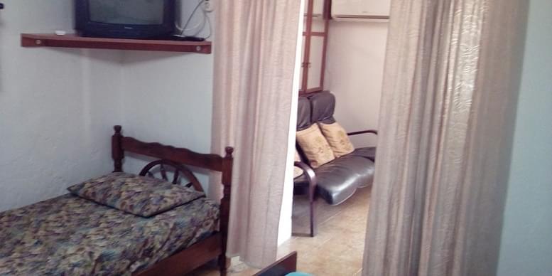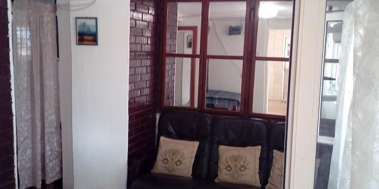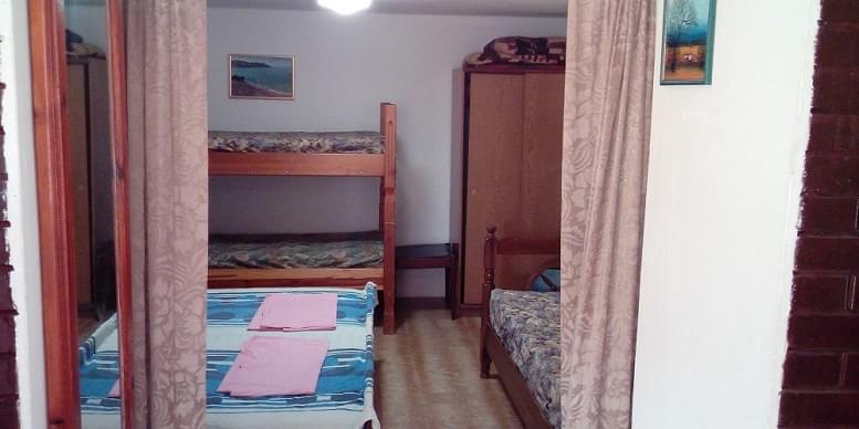 Peta kuća od plaže na udaljenosti od 100 m. Opremljenost apartmana: francuski krevet, dodatni ležajevi, klima, kupatilo, Wi-fi, TV, plakar, opremljena kuhinja (sudopera, posuđe, šporet, frižider). Spavaća soba za 5 osoba, dnevna soba sa kožnim trosjedom, kuhinja, kupatilo. Zaseban ulaz iz dvorišta natkrivenog prirodnom hladovinom kivija. Dvorište je ograđeno sa baštenskom garniturom. Fasadna termo-izolacija, na prozorima su komarnici.
