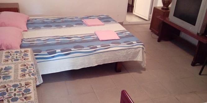 Opremljenost apartmana: francuski krevet, dodatni ležajevi, klima, kupatilo, Wi-fi, TV, plakar, opremljena kuhinja (sudopera, posuđe, šporet, frižider). Spavaća soba za 3 osobe + produženi dio za još 2 osobe. Zaseban ulaz iz dvorišta natkrivenog prirodnom hladovinom kivija. Dvorište je ograđeno sa baštenskom garniturom. Fasadna termo-izolacija, na prozorima su komarnici.
