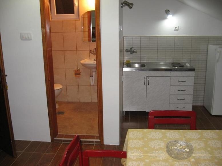 Opremljenost apartmana: francuski krevet, dodatni ležajevi, klima, kupatilo, Wi-fi, TV, plakar, opremljena kuhinja (sudopera, posuđe, šporet, frižider). Spavaća soba za 4 osobe, francuski krevet + 2 kreveta, kuhinja i kupatilo. Fasadna termo-izolacija, na prozorima su komarnici.
