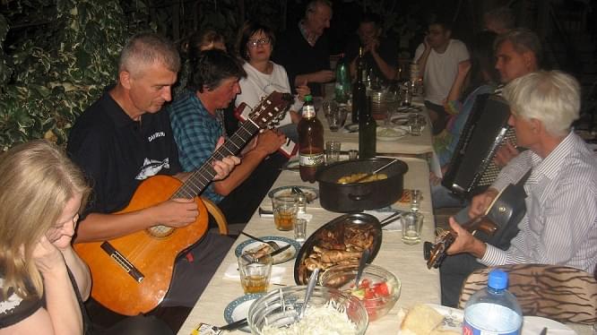 U dvorištu je šank – roštilj sa terasom natkrivenom kivijem i oprema za sport i rekreaciju, koje možete koristiti po želji.
