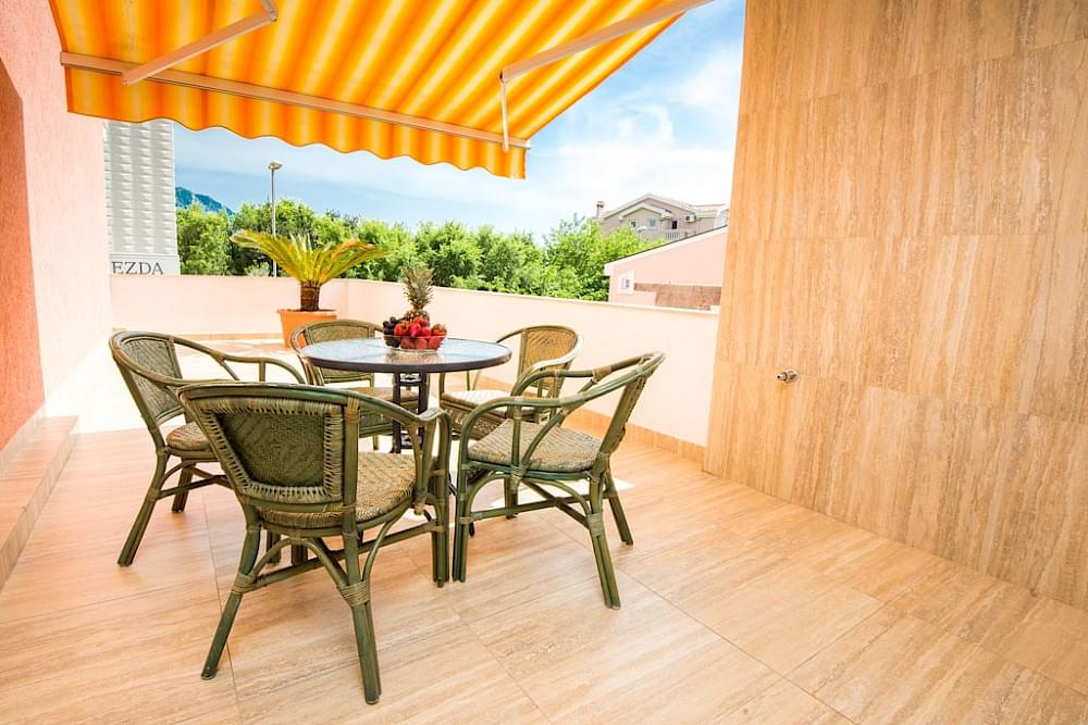 Spacious family apartment with bedroom and living room of 37m2, large terrace of 24m2. It has a double bed and two large sofas. The apartment is designed for a maximum of 4-6 people.