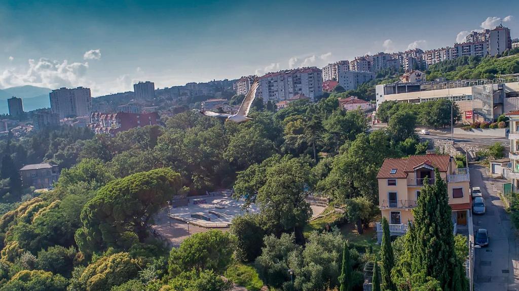 Apartment is placed on the top of family house with magnificent sea view. The location is perfect for everyone who enjoys to be surrounded with greenery, quietness and just a few minutes from city center, 3.9km, beach Kantrida –Ploče with swimming pool, 2.4km, shopping center ZTC, 800m and 5 foot steps from 2 good dentistry, spa center, skate park, children’s playground.