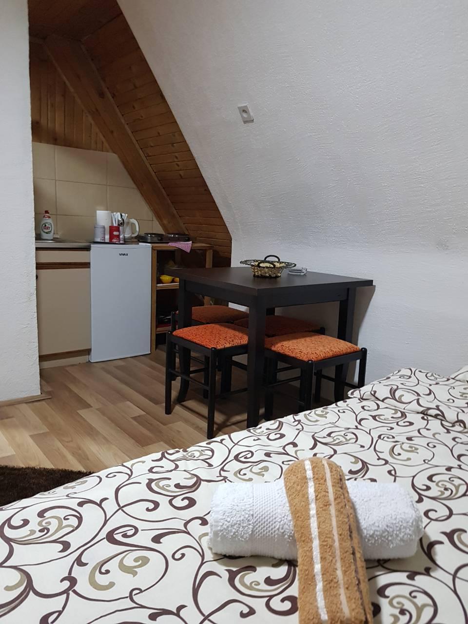 Apartments Javorje, a particularly pleasant ambience surrounded by the shade of maple wood, which provides a special feeling of pleasure in the emperors of Durmitor air and the unusual beauty of the landscape. Distance from the apartment to the center is 5 km, Ski center Savin kuk 3 km, Black Lake 6 km and Canyon Tara 15 km. The apartment contains an equipped kitchen, living room, bedroom with double bed, separate bathroom, LCD TV with cable and wifi. We offer homemade traditional breakfast. Free private parking is possible on site.