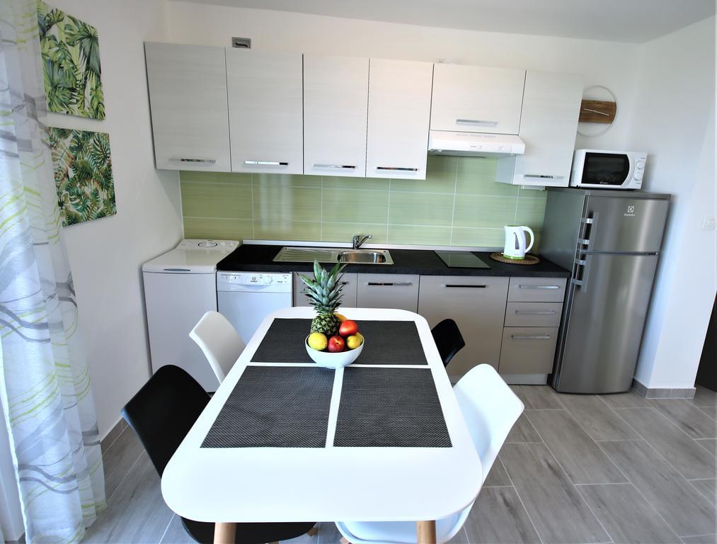 Apartman ima dnevni boravak s kaučem na rasklapanje, kuhinju kuhinju s perilicom, indukcijskim kuhalom, sredicom, perilicom rublja i priborom za kuhanje, spavaću sobu s velikim bračnim krevetom, hodnik i kupaonu s tušom.