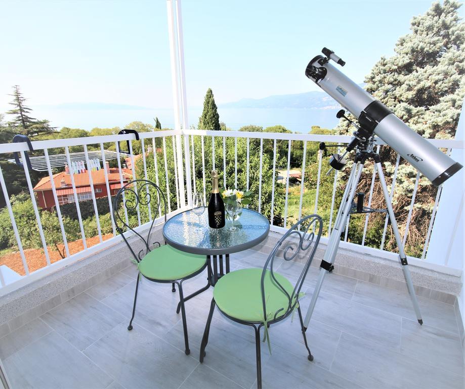 Nudi objekt s besplatnim WiFi-jem, TV ravnog ekrana, klima uređaj, besplatni privatni parking. Nalazi se u mirnoj zoni s balkonom i prekrasnim pogledom na more, planinu Učka i zelenu prirodu.
