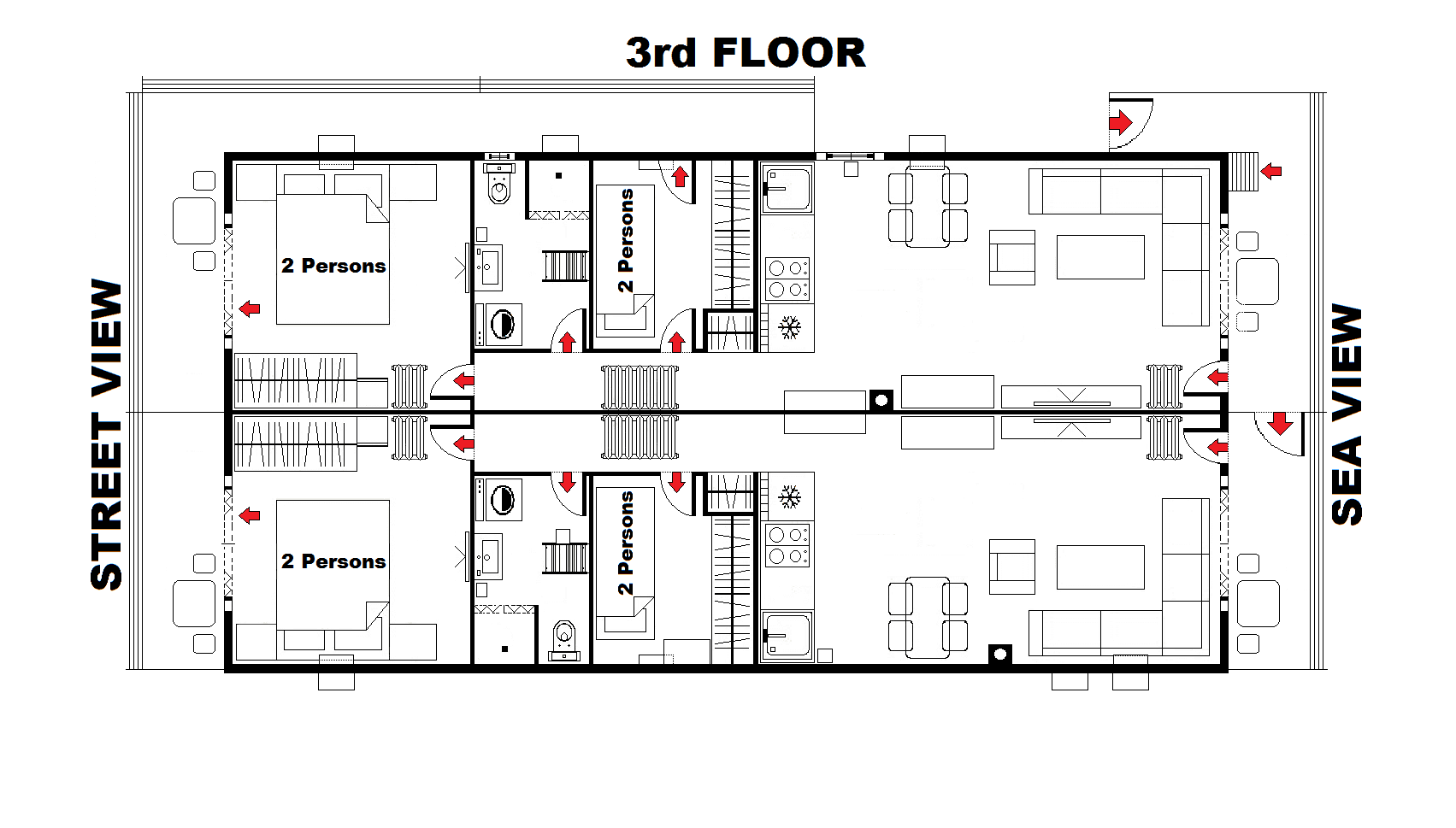 Apartment has: Smart TV (Living room) – Smart TV (Room) with cable TV, air conditioning, hot water 24h, kitchen (dishwasher), bathroom (washing machine), separate terrace, internet, mosquito nets on the windows, sea view, parking, safe, iron, hairdryer, bed linen. Living room + 2 bedrooms (4 beds).