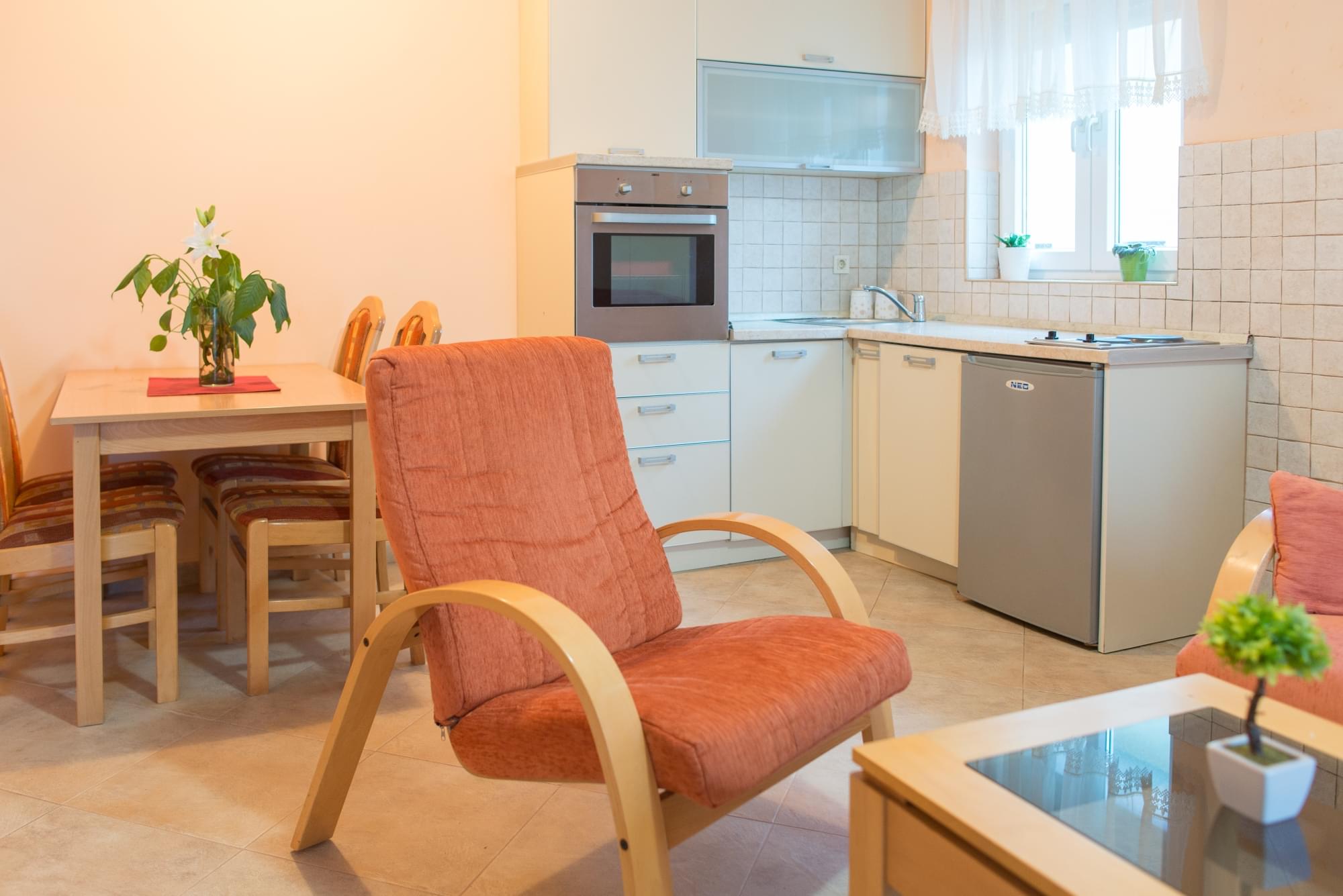 Apartman se nalazi u mirnom dijelu grada, a od centra je udaljen svega par minuta hoda. Apartman je opremljen klima-uređajem, kablovskom televizijom, internetom, veš-mašinom, mašinom za pranje suđa, kuvalom za vodu, tosterom, kompletnim posuđem i fenom za kosu. Upotreba toaletnog pribora je uključena u cijenu. Apartman se čisti svaka 2 dana.