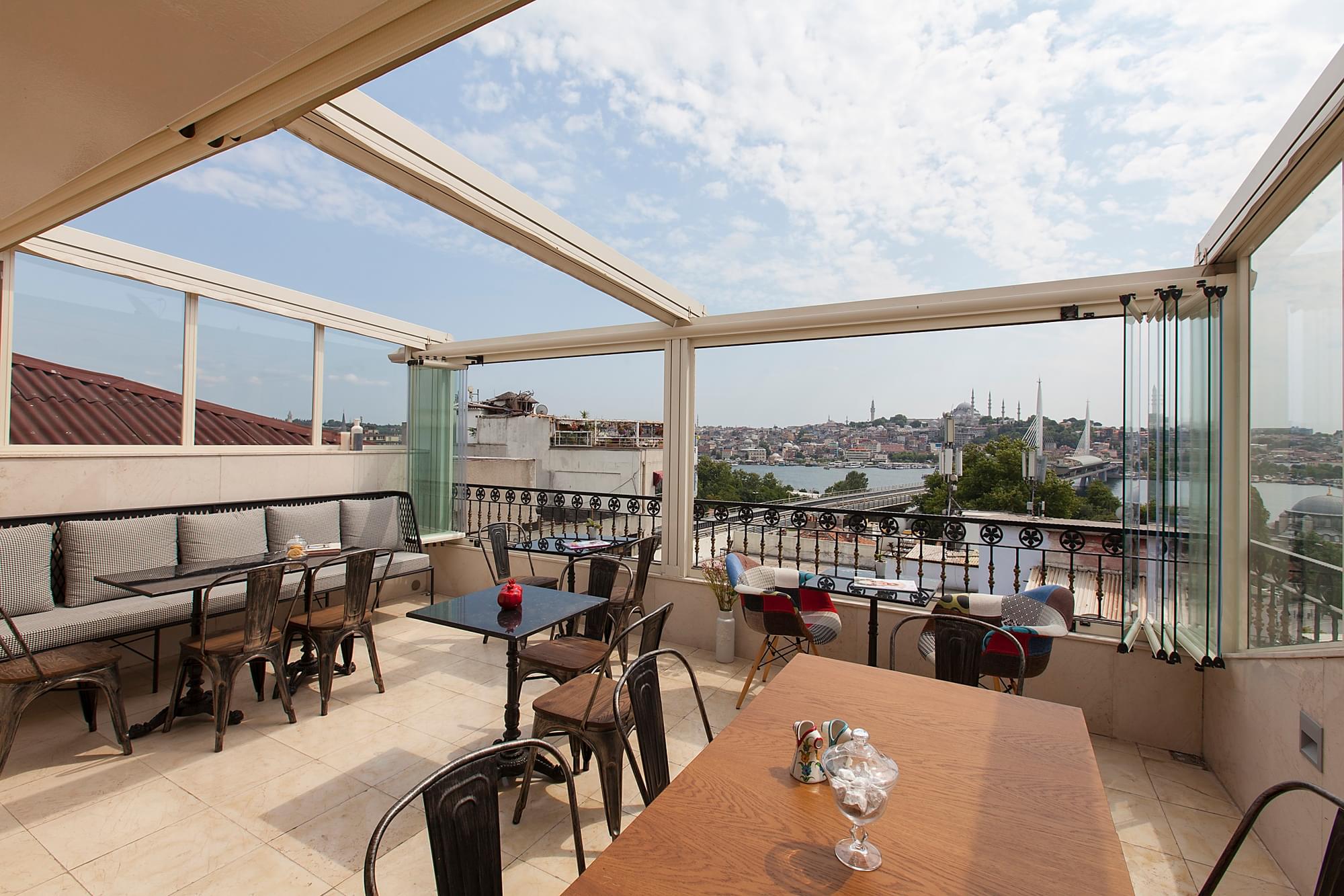 Dairemiz bodrum katında bulunmaktadır. Havalandırma mevcuttur. GüneÅŸ ışığı almamaktadır. Dışarıyı gören penceresi yoktur. Müşterilerimiz için kahvaltımız her gün hazırlanmaktadır. İstanbul’un kalbinde eÅŸsiz teras manzarası ile açık büfe kahvaltı edebileceÄŸiniz bir oda ile sizlere hizmet saÄŸlıyoruz. Yerimiz, konumu itibariyle birçok tarihi mekana ya da imkanlara ulaÅŸabileceÄŸiniz merkezi bölgede yer almaktadır.