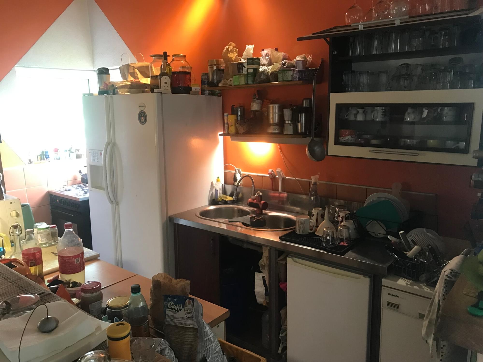 Several shared bathrooms and big living room with shared full equipped kitchen