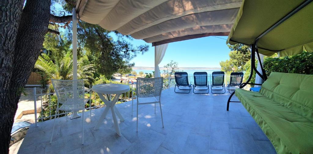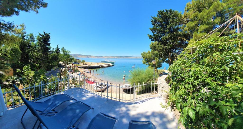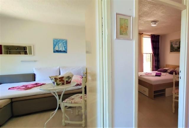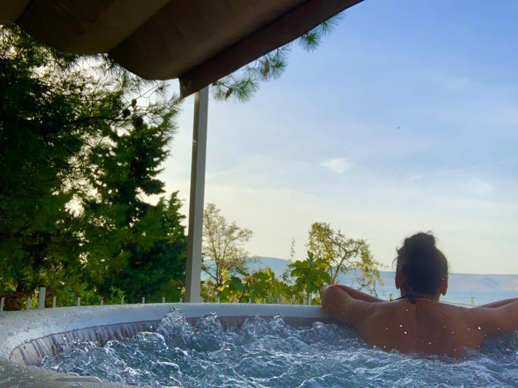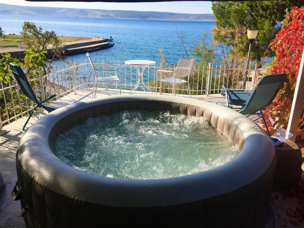 The place is ideal for a family or 4 people. The accommodation is unique because it is located right on the beach, 5 meters from the beach. Beach house has a beautiful garden, there are 4 terraces, with a swing and deckchairs. You are so close to the sea, yet separated and protected from outside views, because you are protected by the plants in the garden. There is also a large pine tree in the yard that provides shade, an ideal place for barbecuing and having lunch. The beach house has a kitchen with a dishwasher, 2 bedrooms, a children’s room, a bathroom with a shower and a washing machine. In addition to the beautiful beach, you can enjoy a two-seater kayak, there are 2 SUPs, or ride around beautiful areas with 4 bicycles. After a full and active day, relax in a hot jazz with playful bubbles.