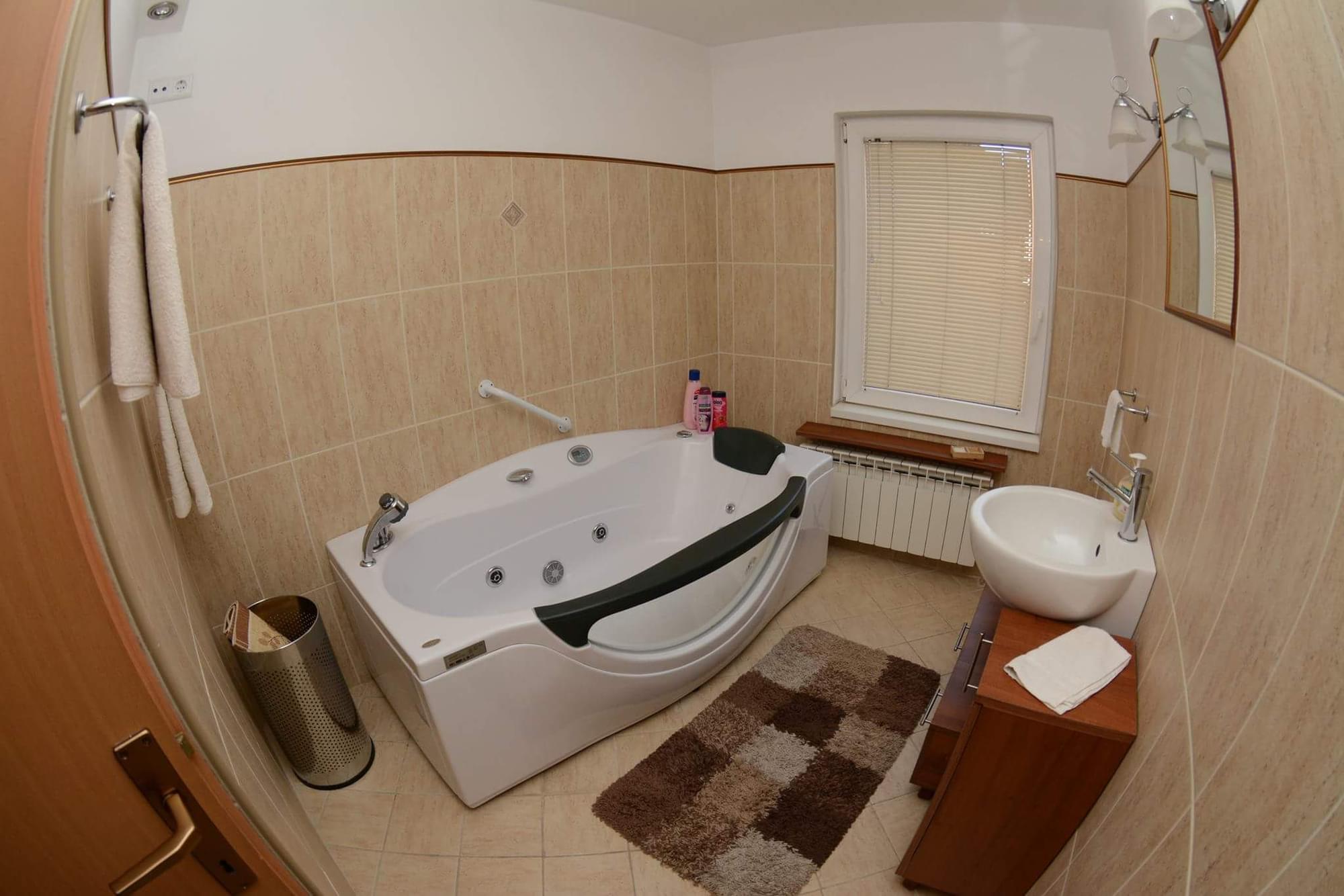 The apartment has two living rooms, a kitchen with all household appliances (dishwasher, microwave oven, toaster, kettle, blender…), dining room, two bedrooms with double beds, one bedroom for one person, bathroom with shower. . cabin and bathroom with jacuzzi (for guests) and toilet.